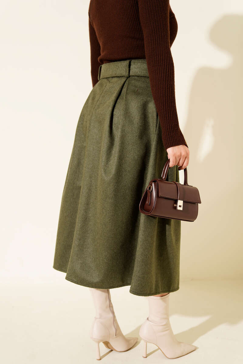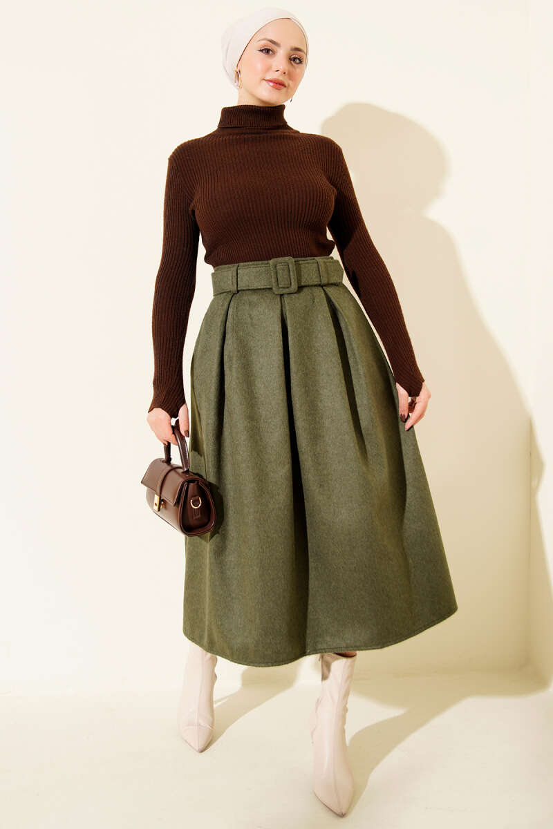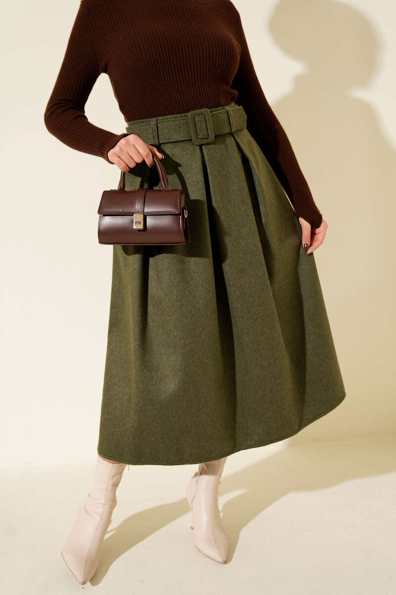 Kloş Kalın Kemerli Etek Taba