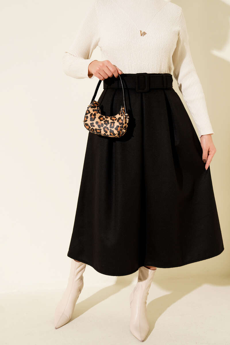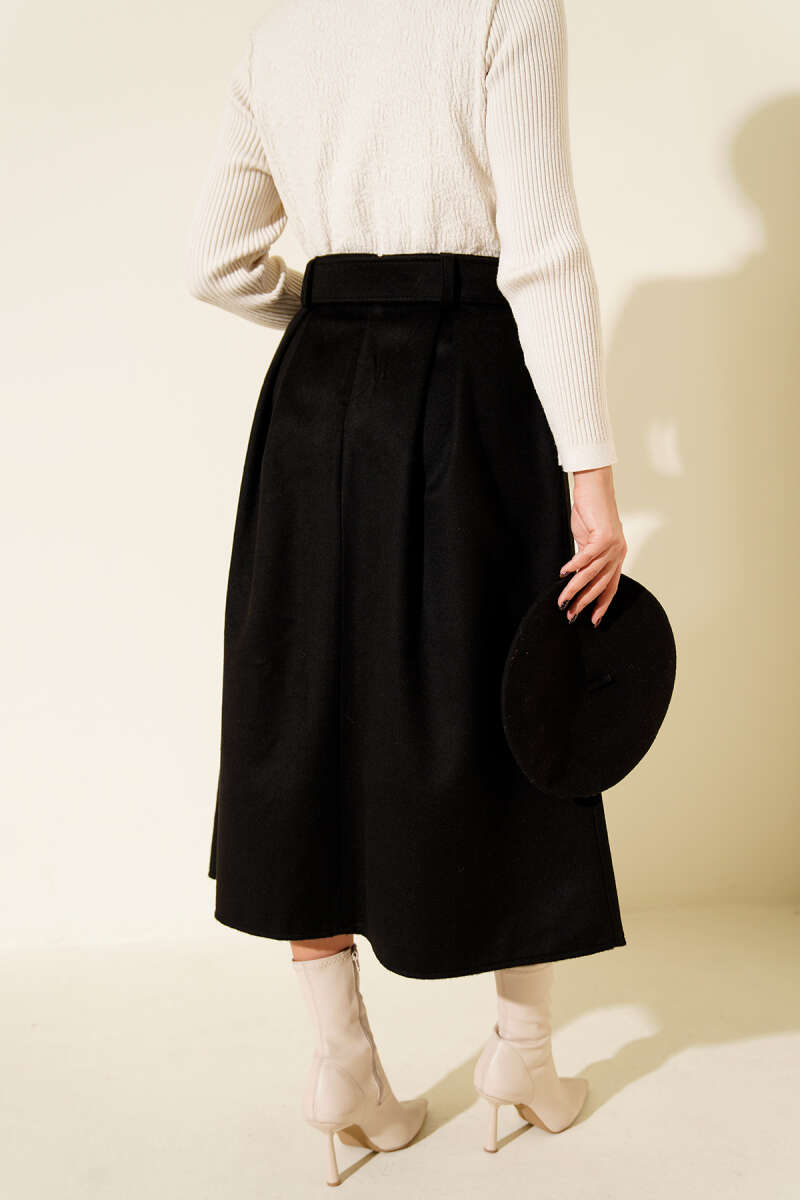 Kazayağı Desen Pileli Kemerli Etek Bej