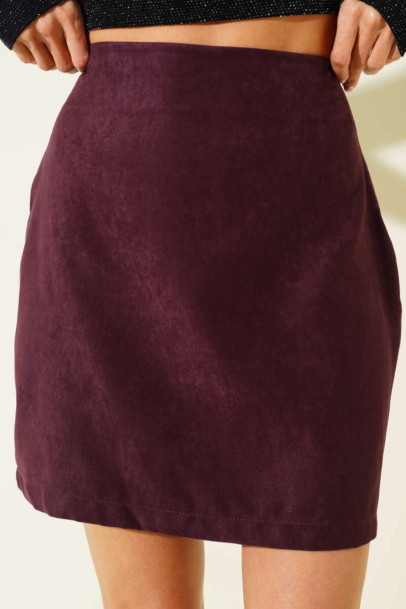 Pens Detaylı Mini Süet Etek Mürdüm