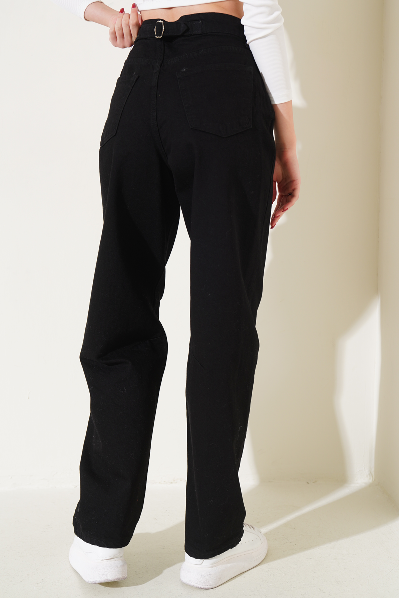 İp Detaylı Beli Lastikli Dar Paça Siyah Pantolon
