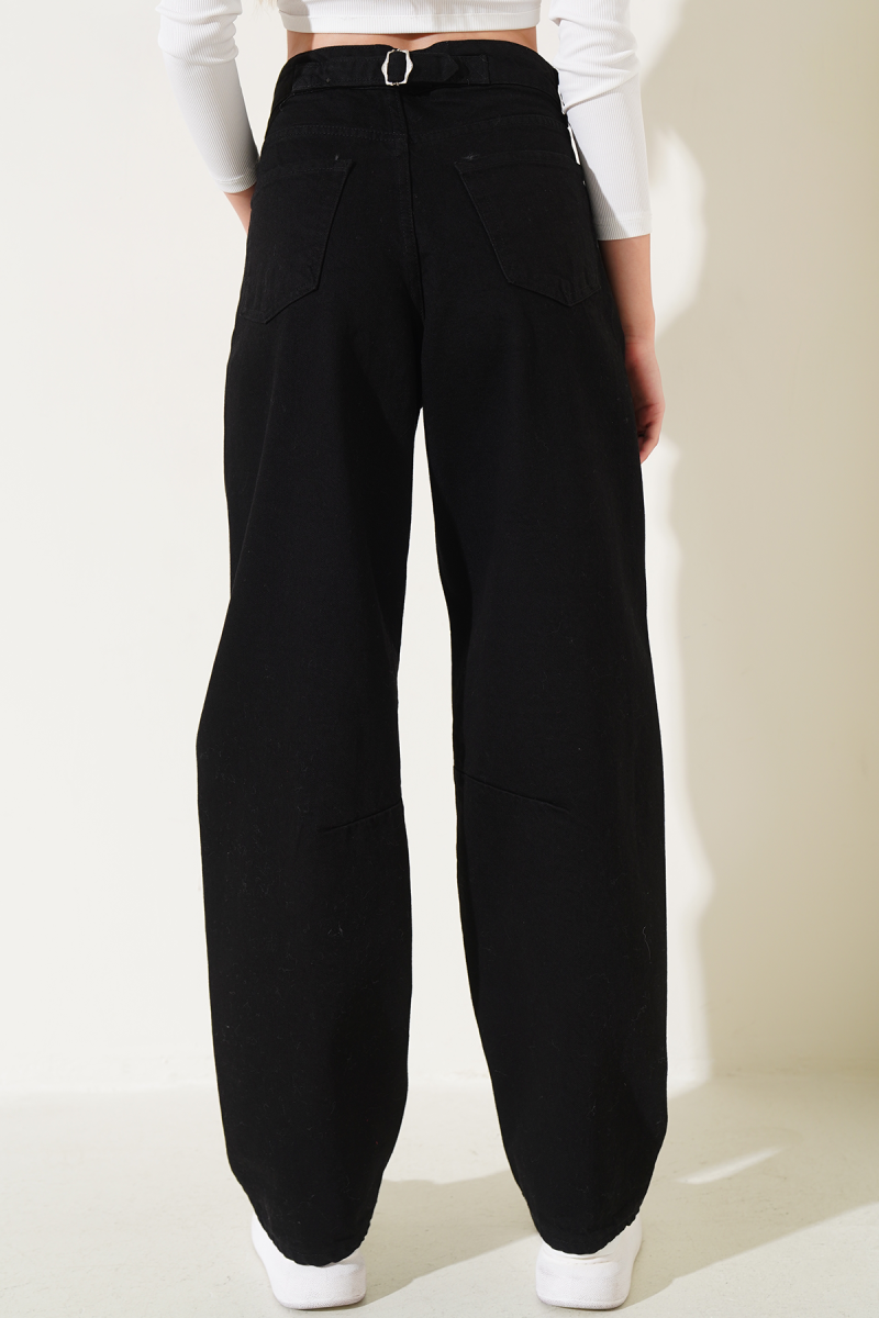 Bol Paça Salaş Siyah Keten Pantolon