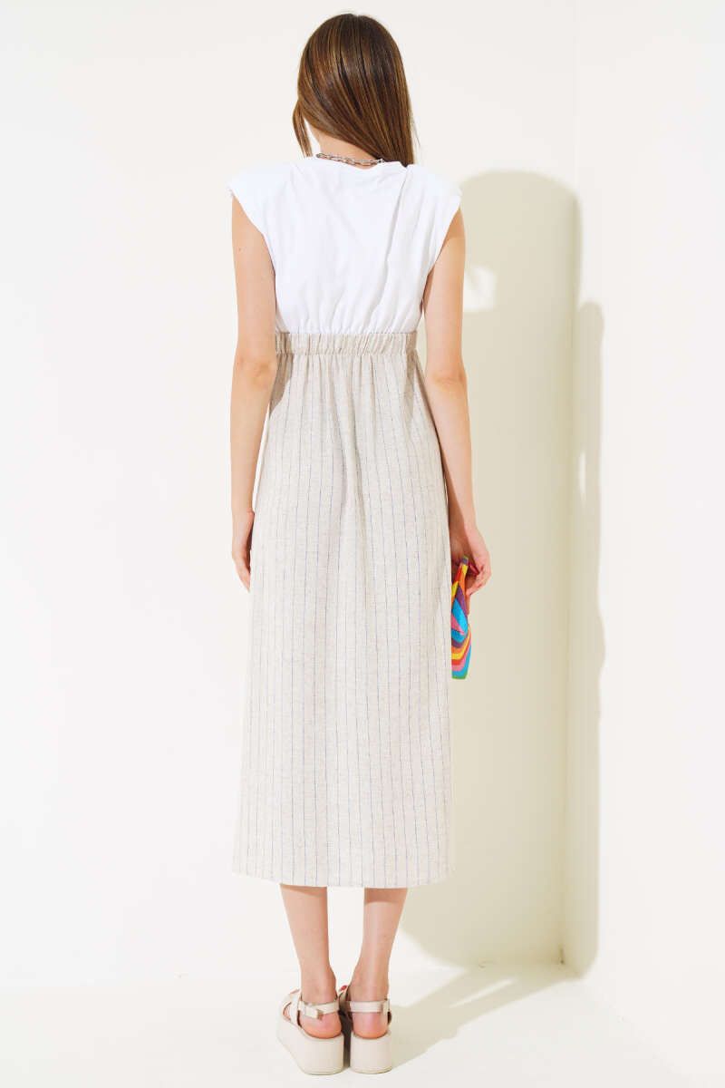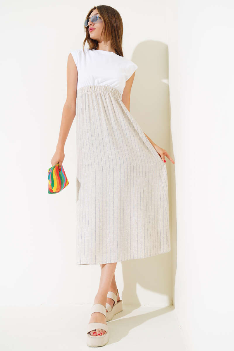 Yatay Çizgi Detaylı Basic Triko Tunik Bej Gri