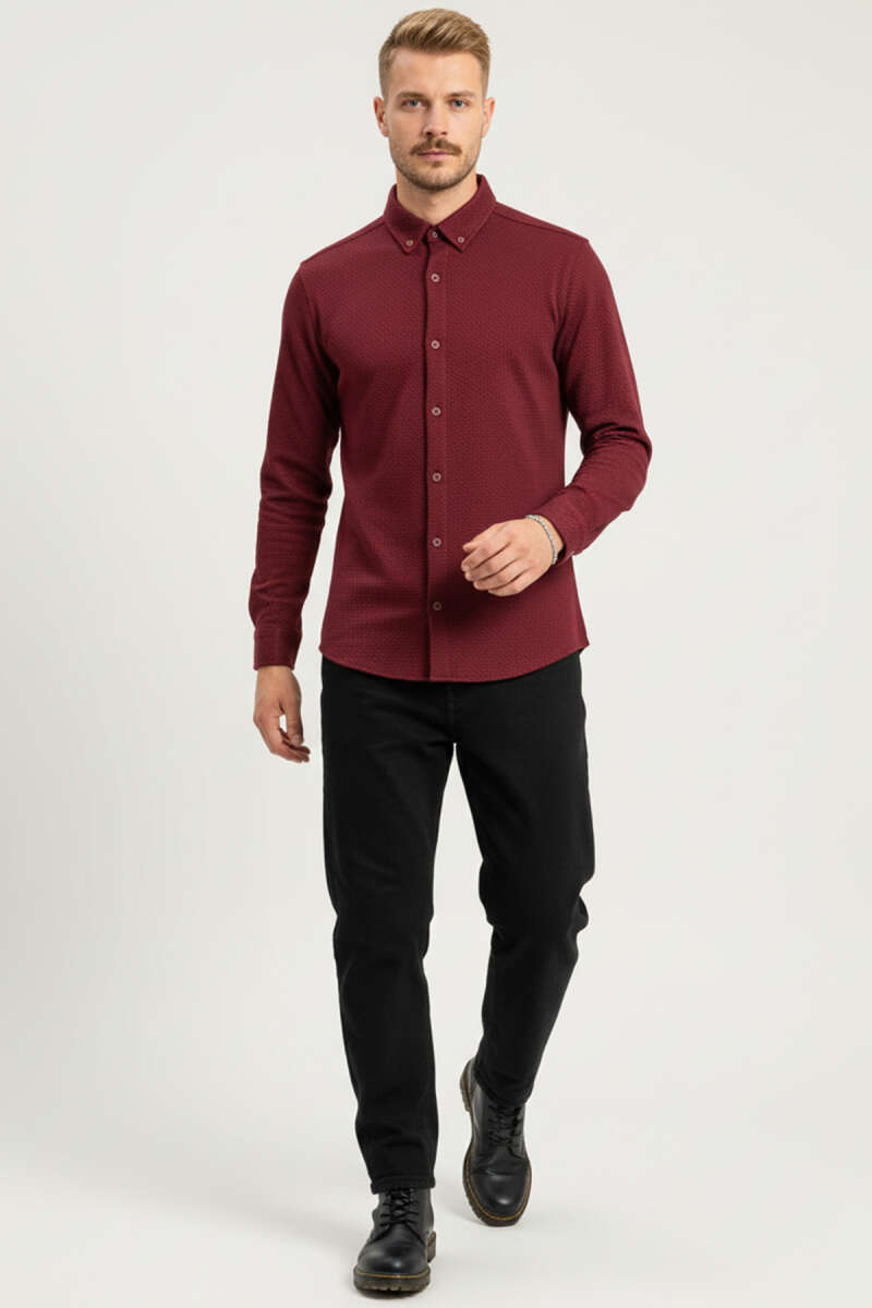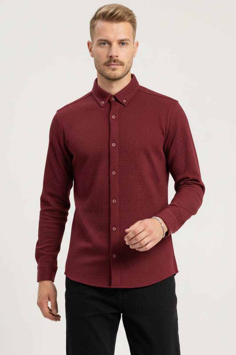 Kesik Çizgili Erkek Keten Gömlek Kahve