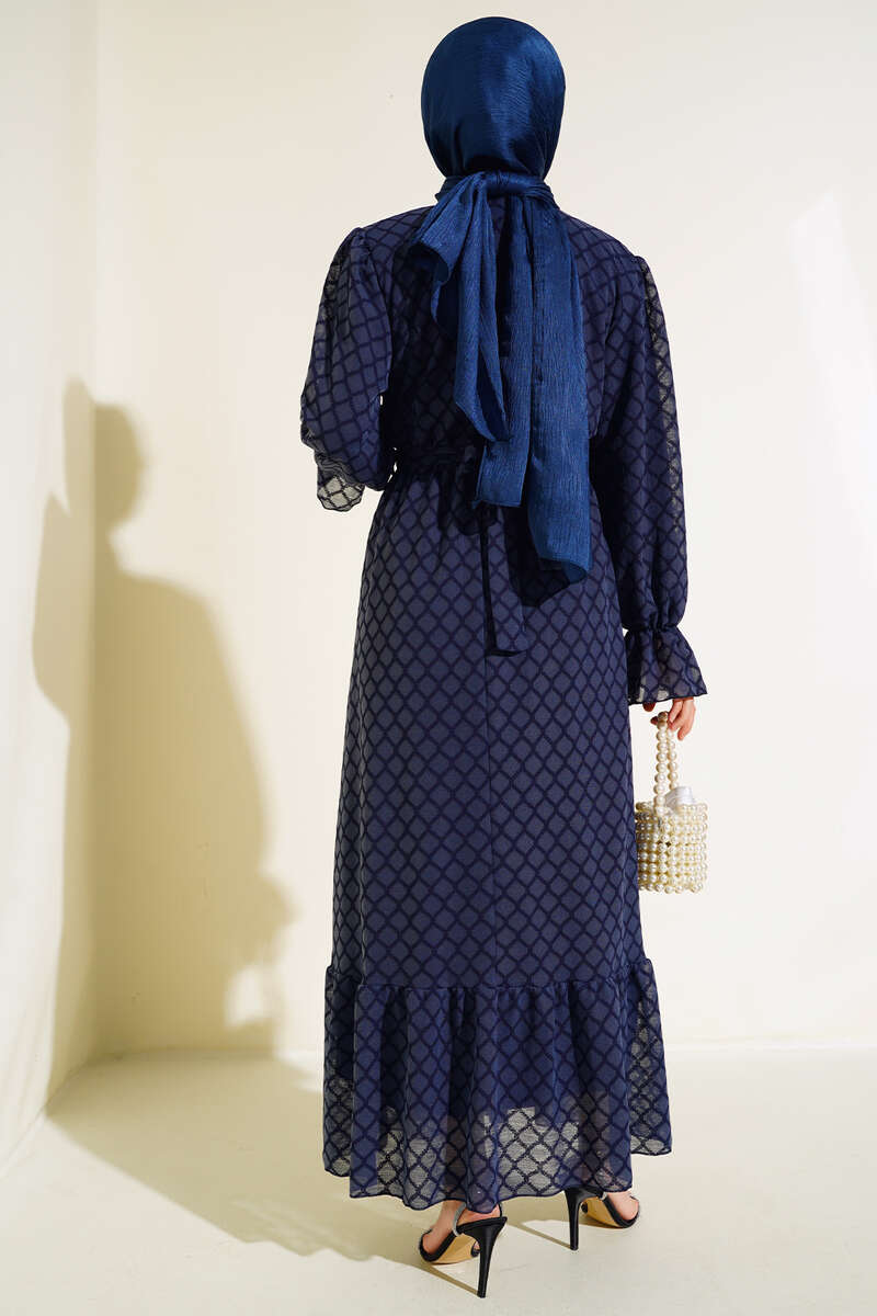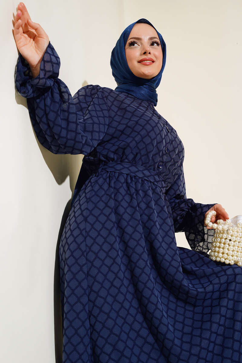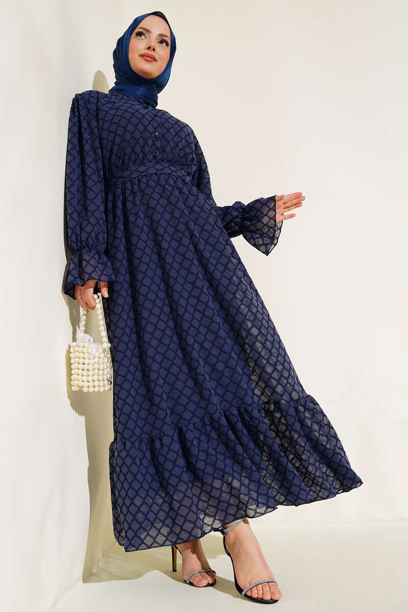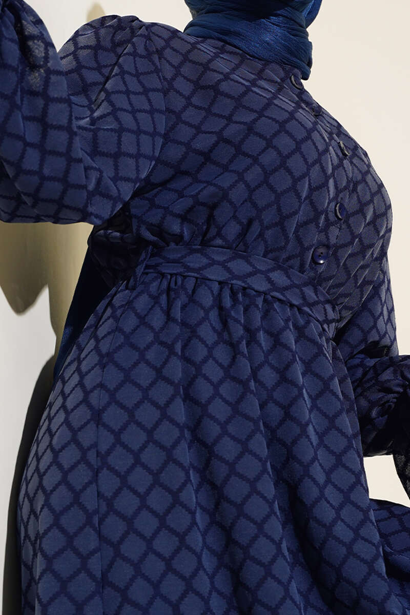 Şık elbisemiz size çok yakışacak. Petek  desenli elbisemiz hareketlilik kazanmıştır. Belden lastikli elbise modelimiz aynı zamanda kuşak bağlamalıdır. Önü beline kadar düğmelidir. Astarlıdır. Kol bilekleri lastikli ve fırfırlı olup şık bir görünüm oluşturmuştur. Kat elbise modelimizin renk seçenekleri mevcuttur.