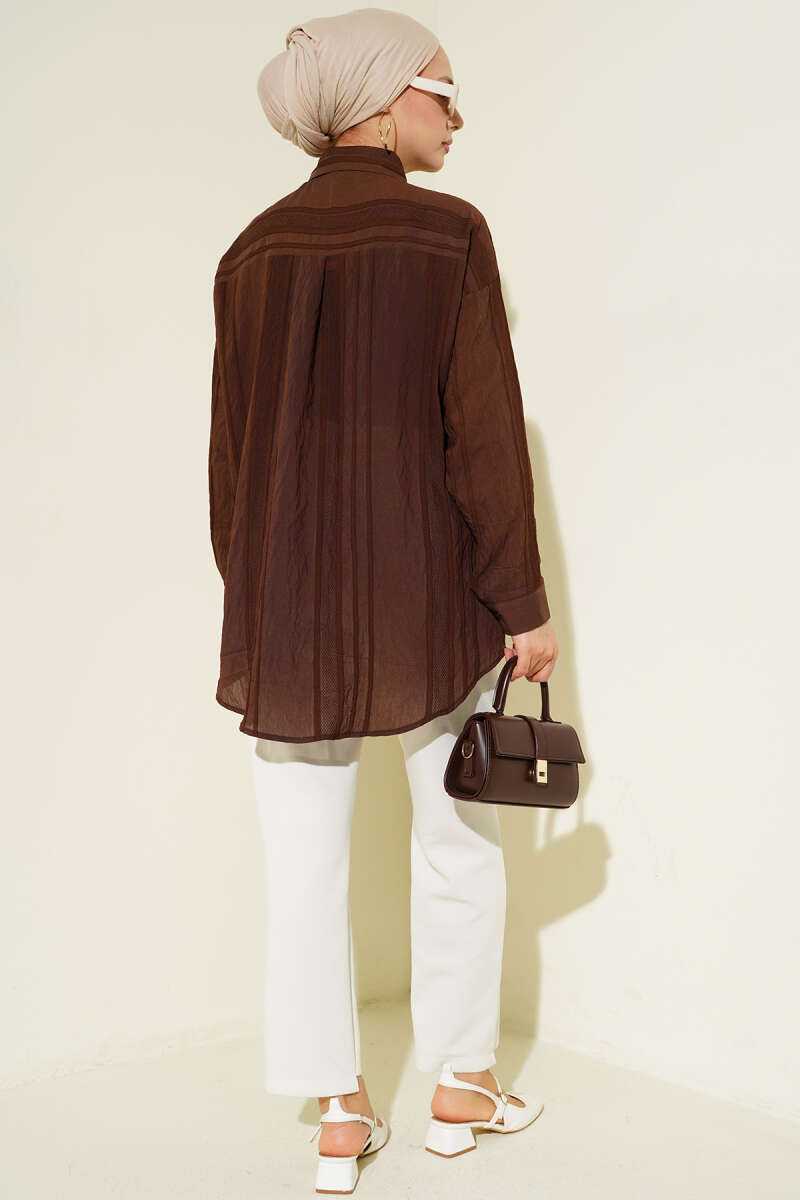 Bel İpli Düşük Omuz Gömlek Lacivert