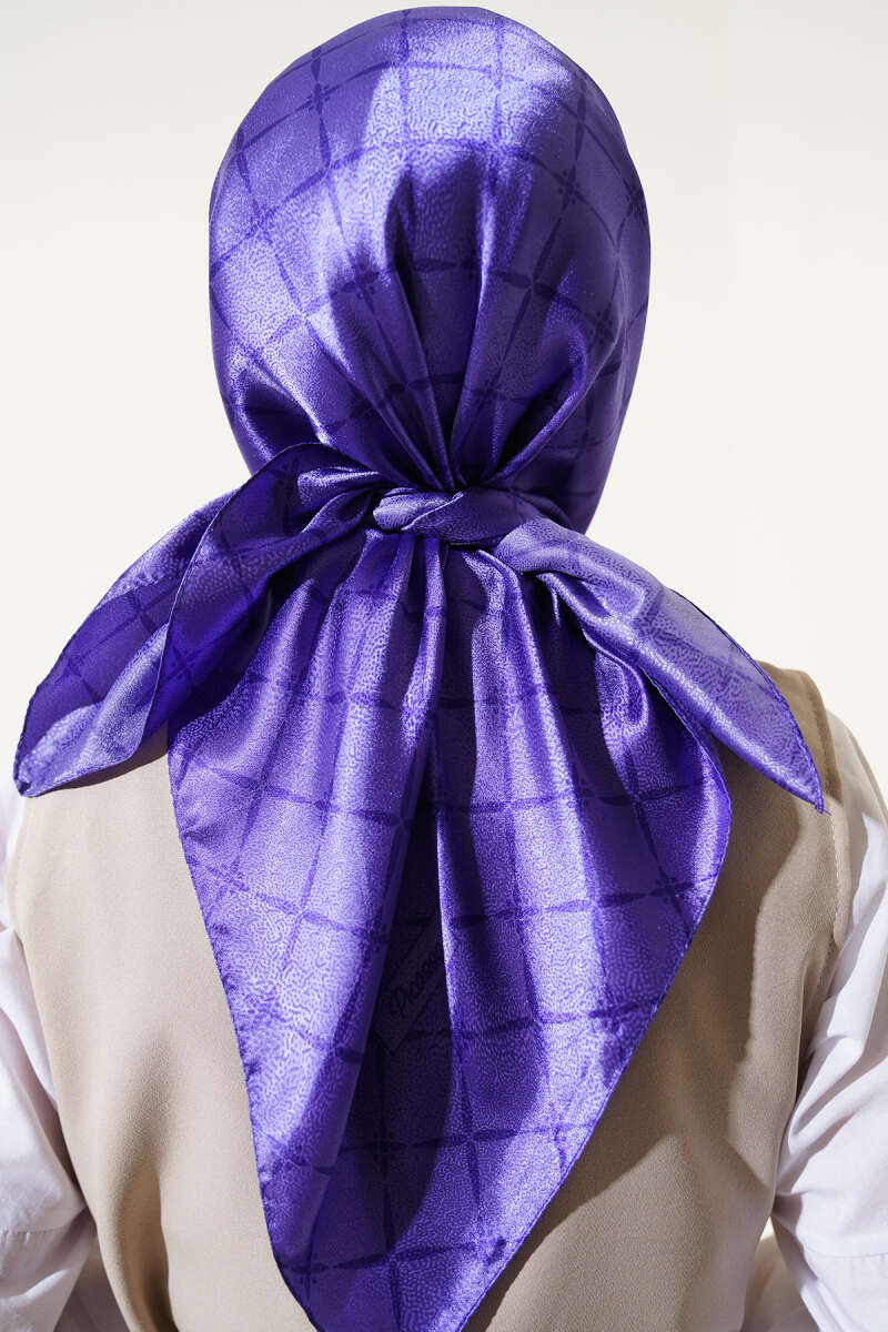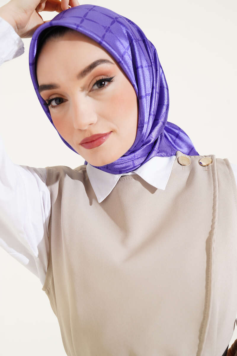 Ebruli Desen Müslin Şal Mor