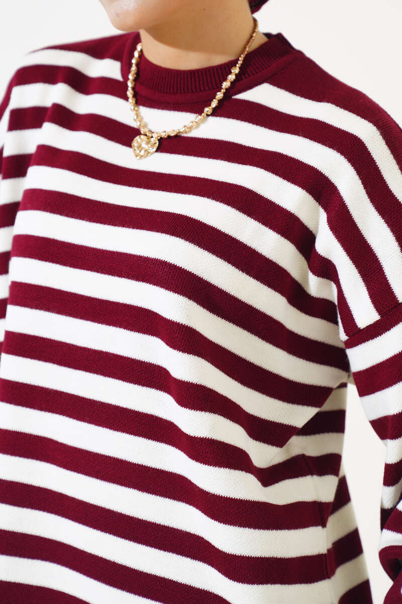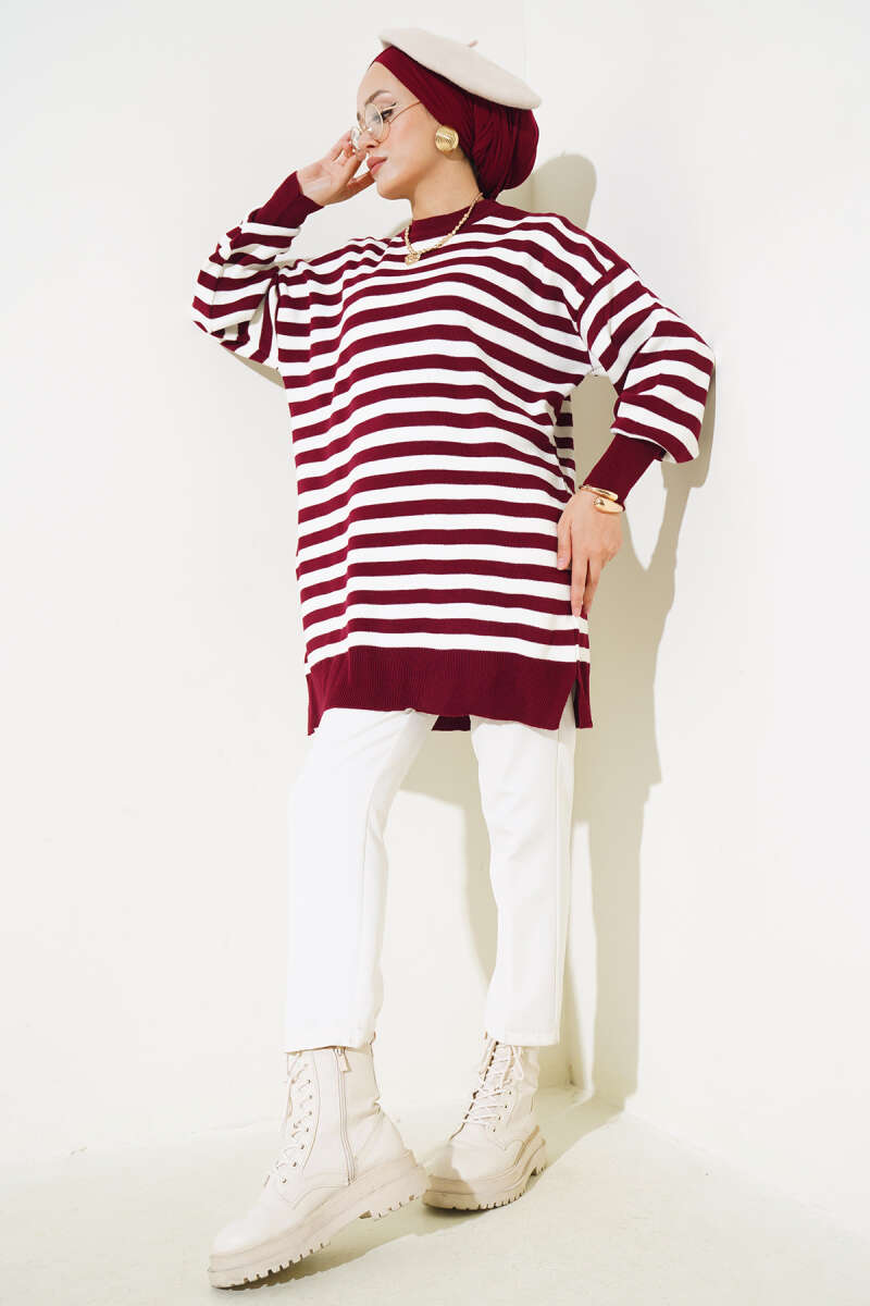 Gömlek Yaka Fularlı Triko Tunik Bordo