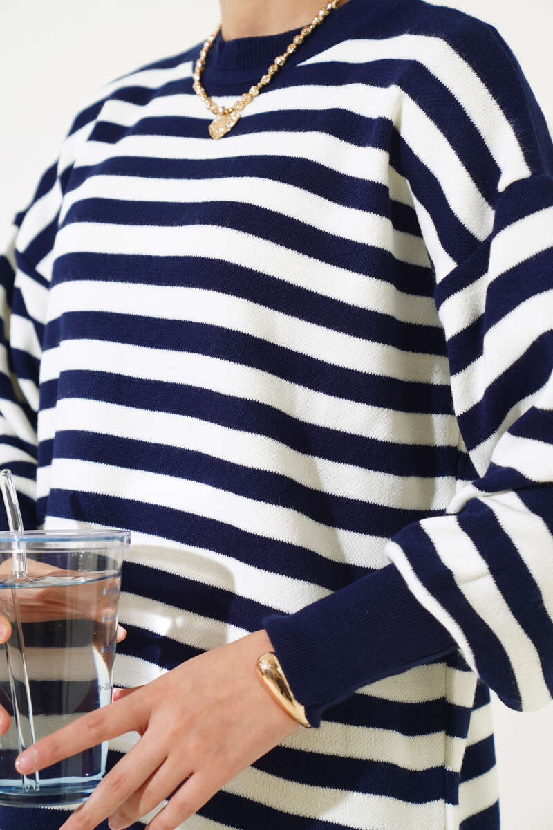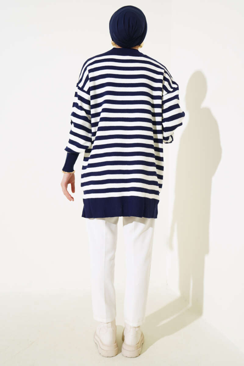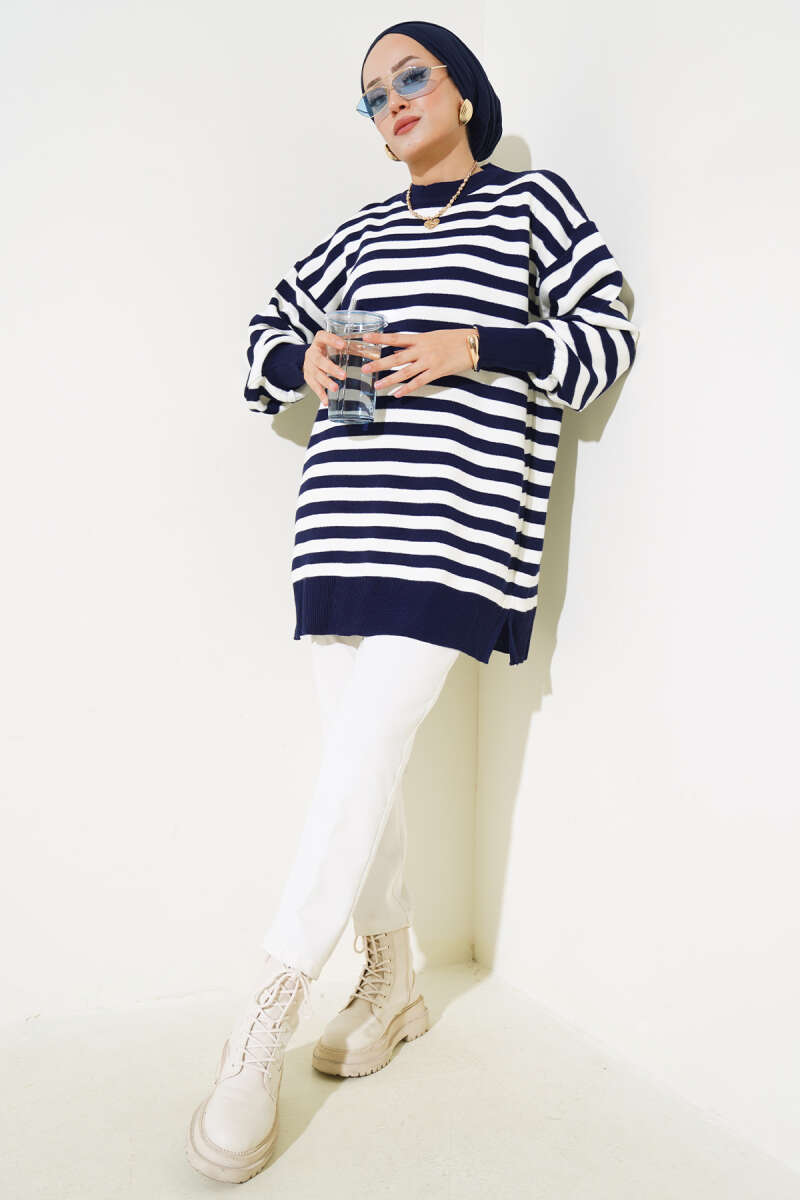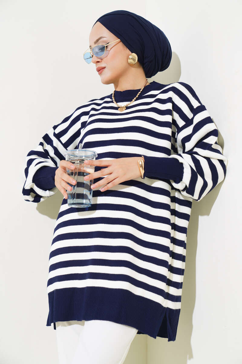 Gömlek Yaka Fularlı Triko Tunik Lacivert