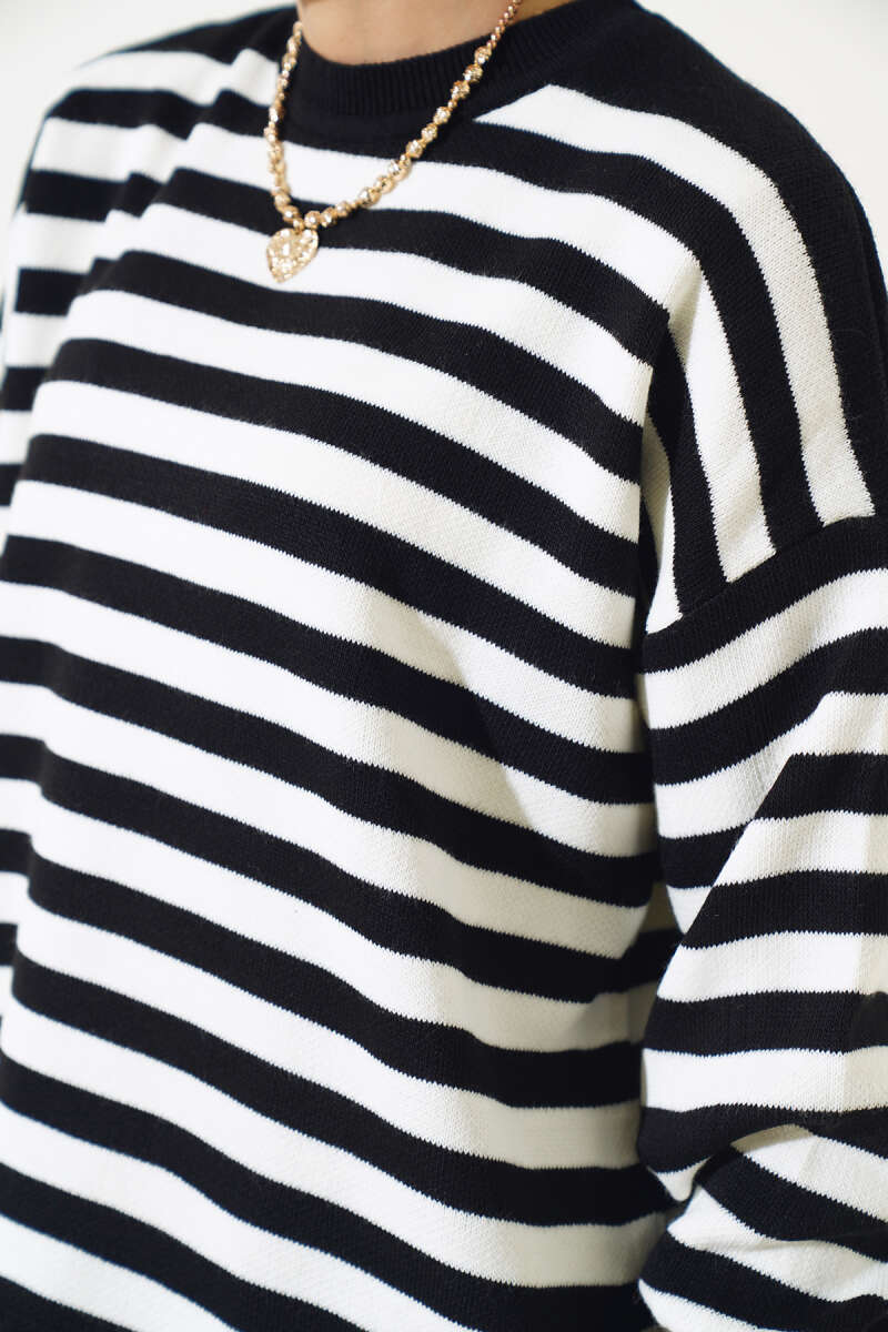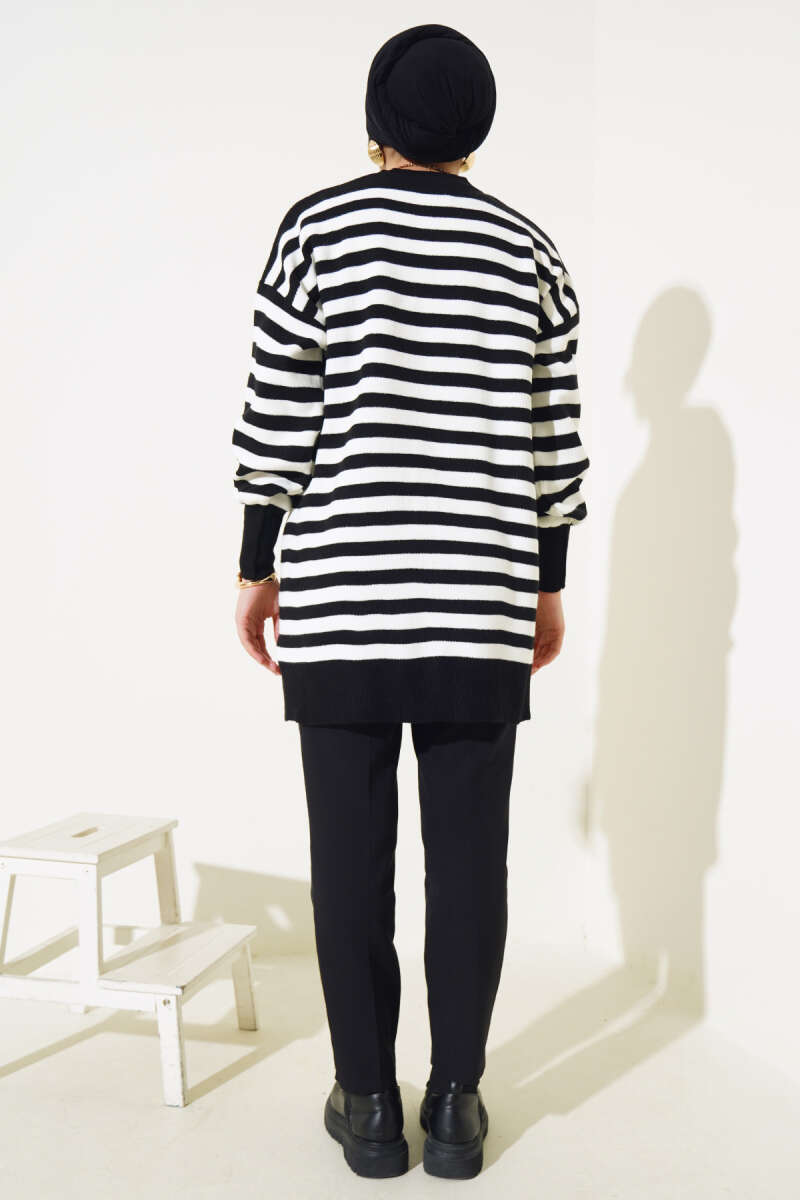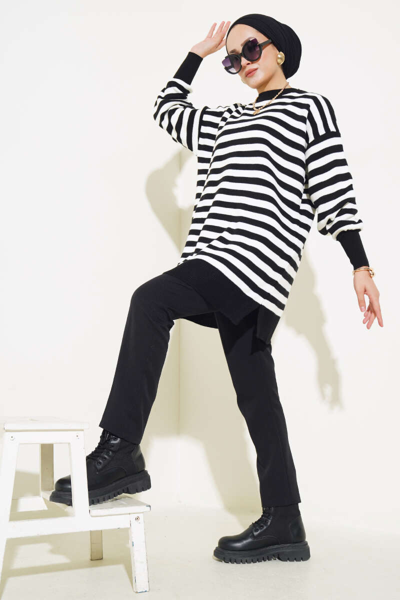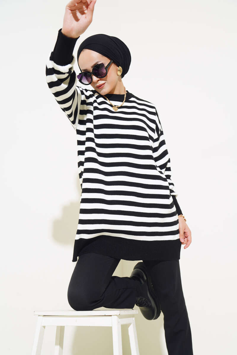 Gömlek Yaka Fularlı Triko Tunik Siyah