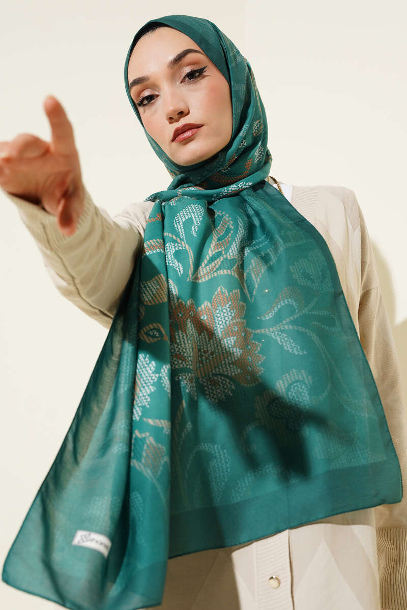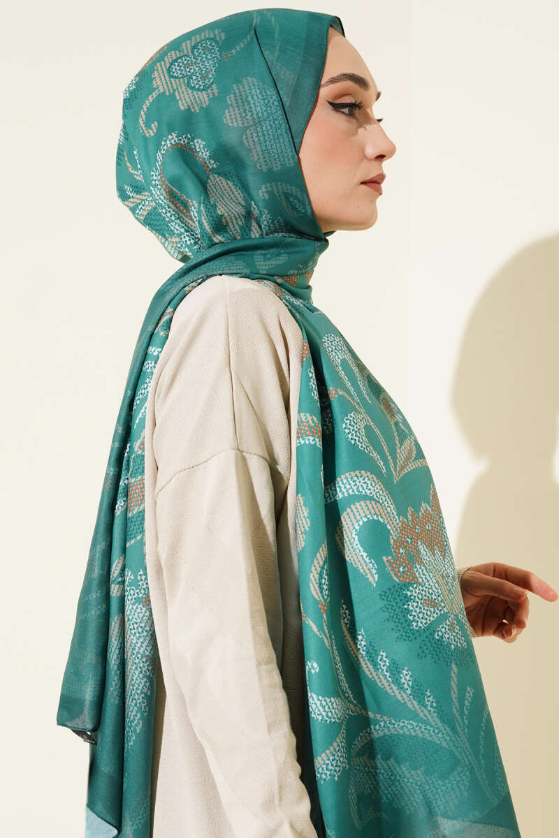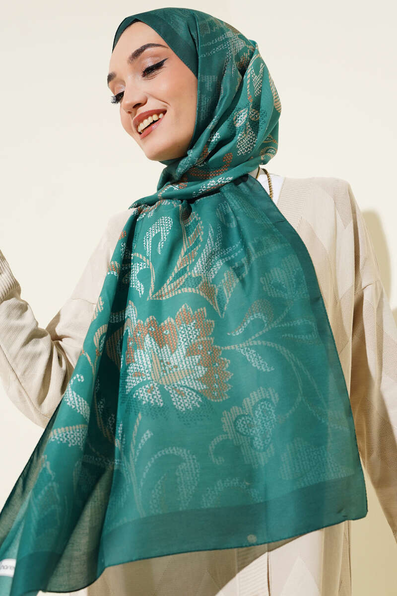 Vintage Rose Desen Şal Çağla Yeşili -04