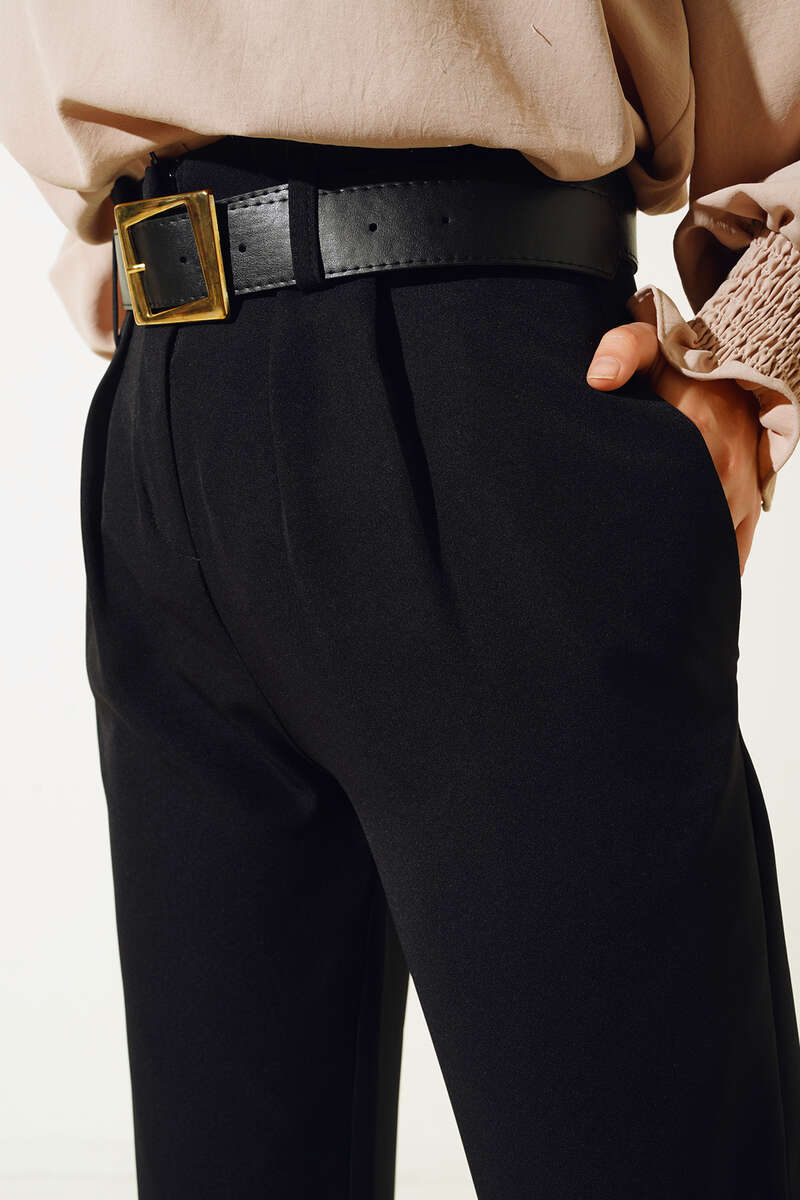 Paça: 40 cmYeni sezon pile detaylı şık pantolonumuz sizlerle. Beli kemerli olan pantolonumuz iki adet cebe sahiptir. Pantolonumuz, günlük kombinlerinize rahat ve şık bir dokunuş yapmak istiyorsanız doğru tercih olacaktır.Kumaş Bilgisi%95 Polyester%5 ElastanModel BilgisiBoy: 167 cmGöğüs: 83 cmBel: 62 cmKalça: 93 cm