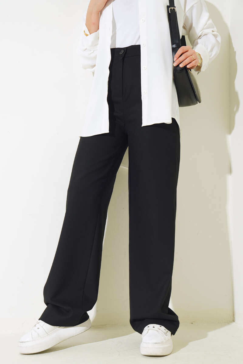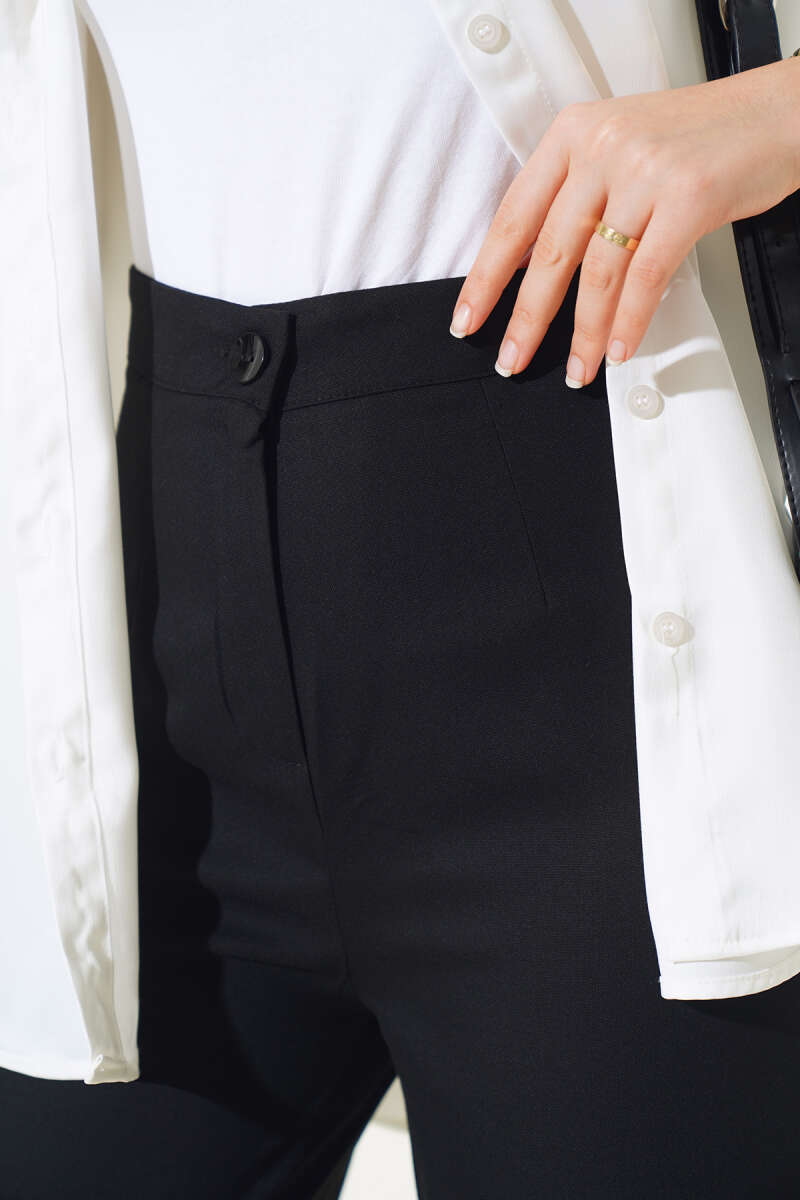 Pile Detaylı Salaş Pantolon Siyah