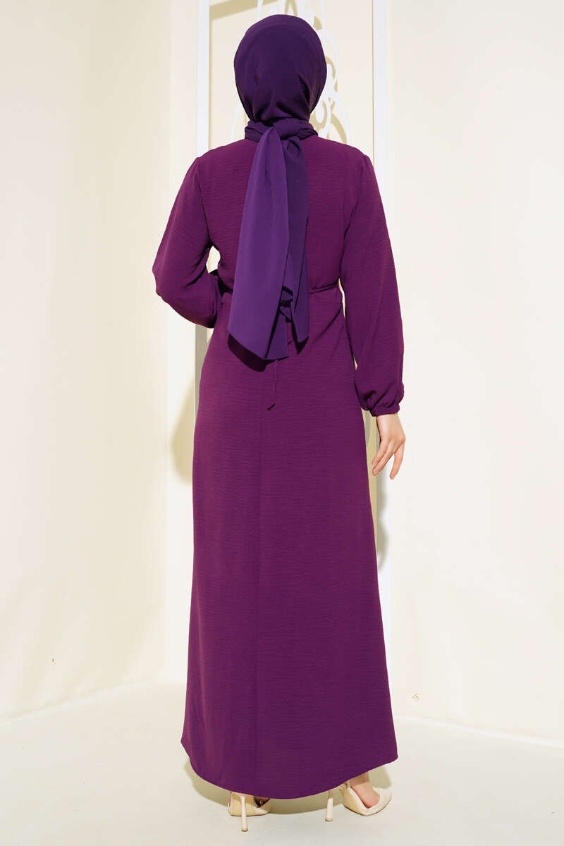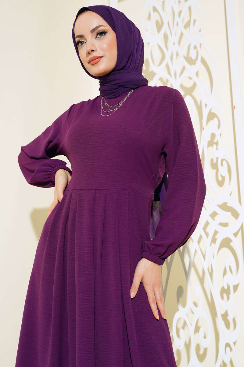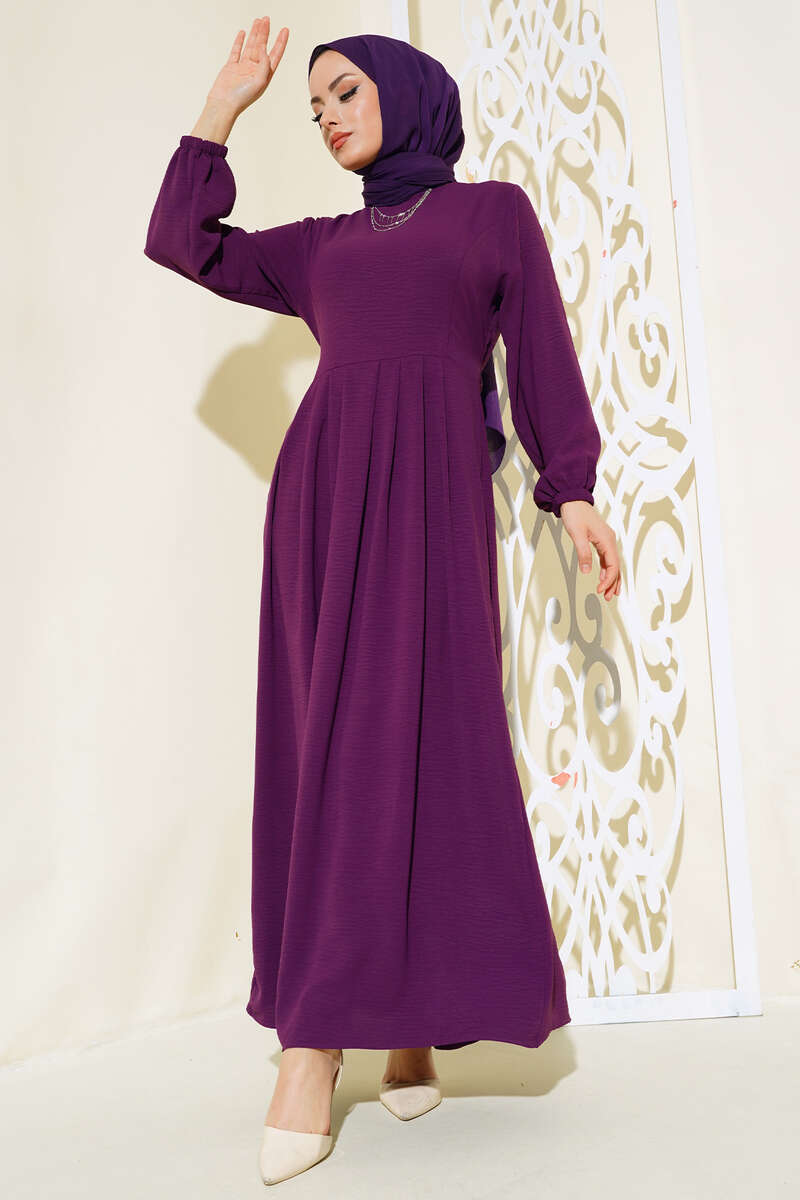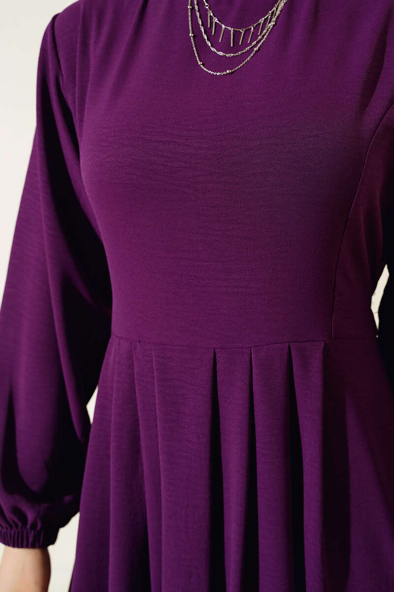 Pileli Ayrobin Elbise Mor