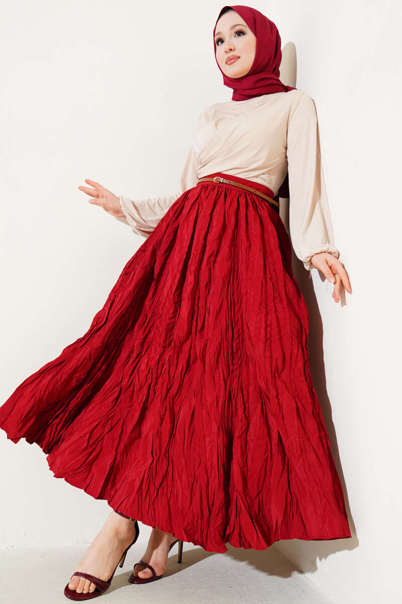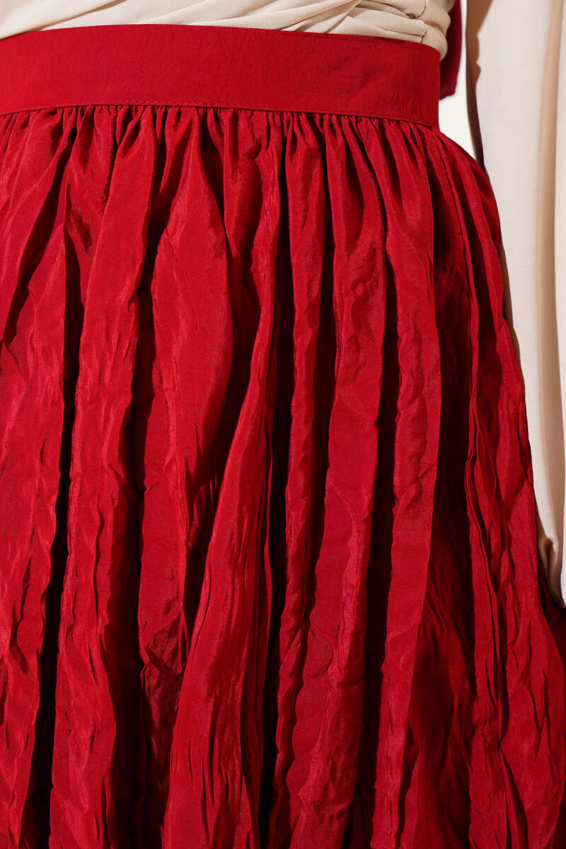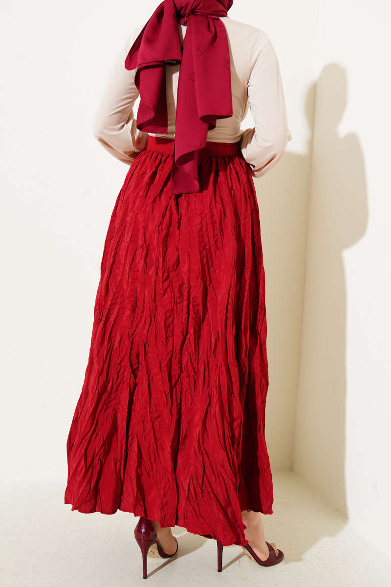 Saten Görünümlü Pileli Etek Bordo