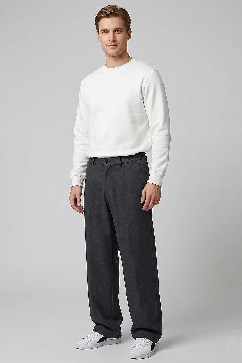 Pileli Bel Lastikli Baggy Erkek Pantolon Antrasit