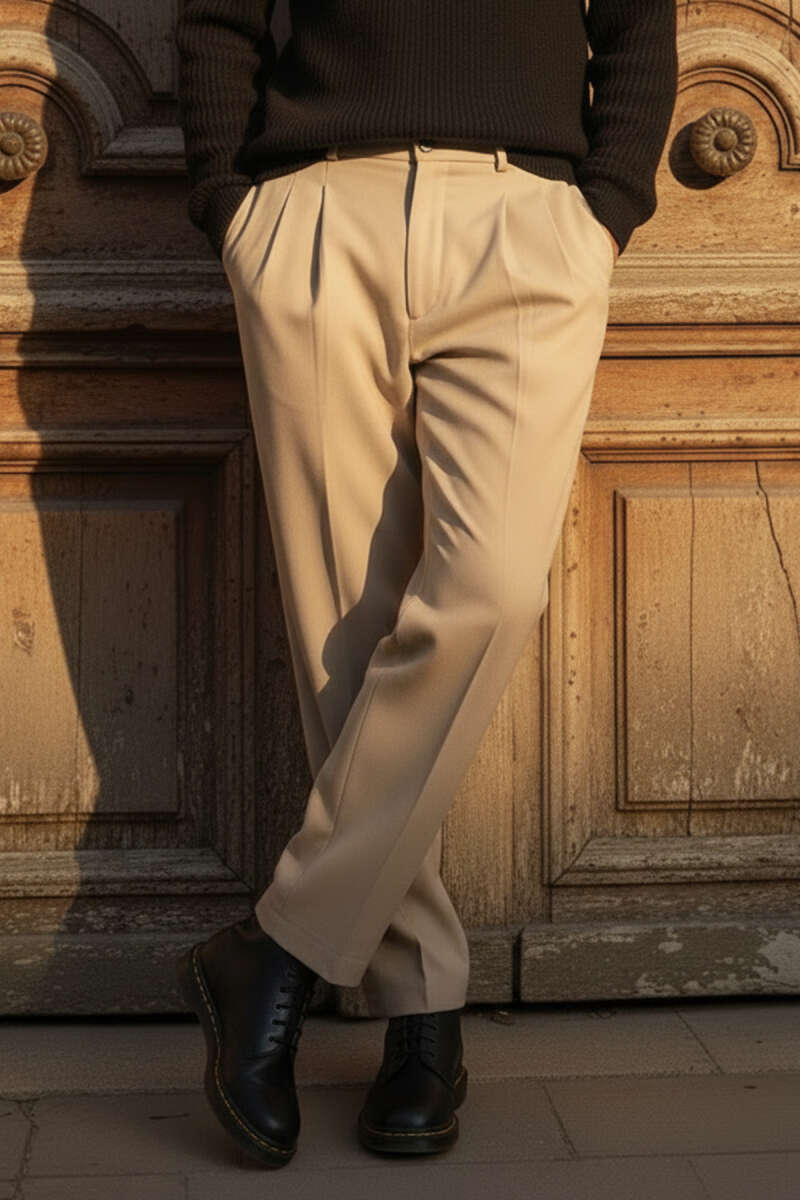 Bel Lastikli Slim Fit Erkek Pantolon Bej