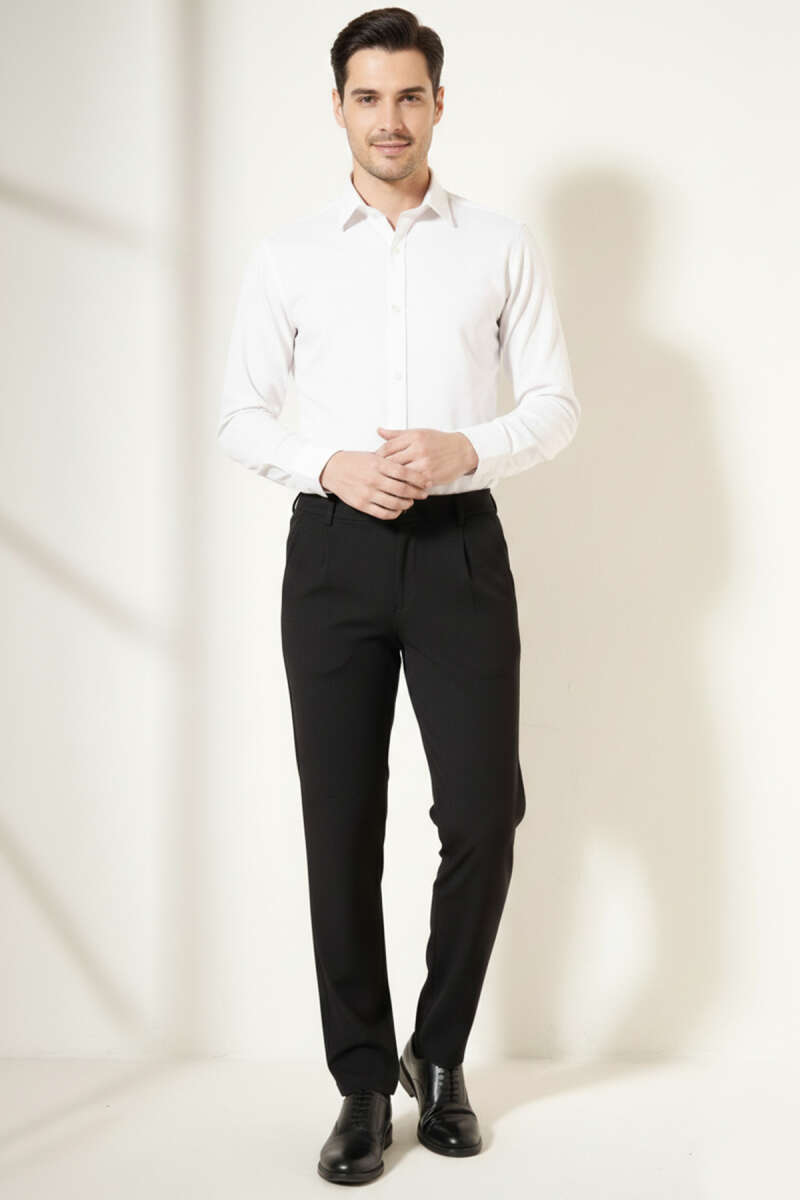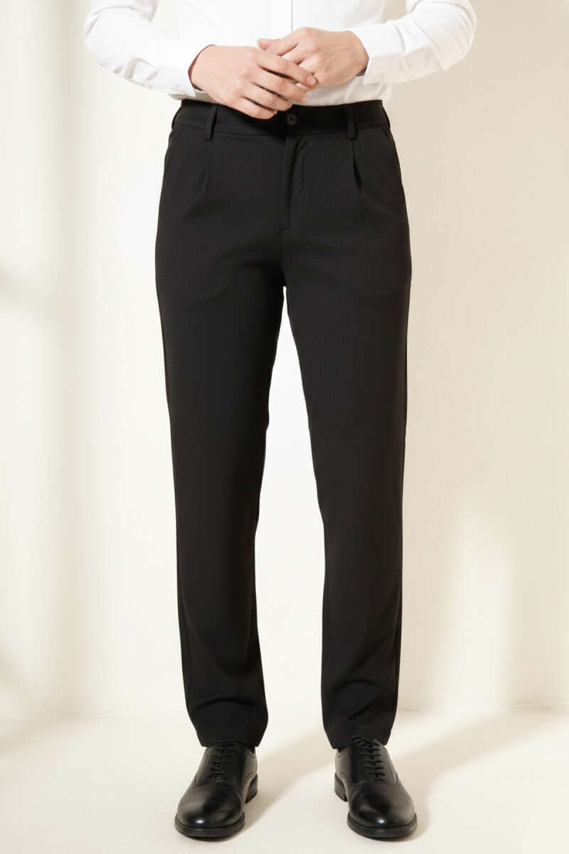 Pileli Beli Lastikli Erkek Pantolon Siyah