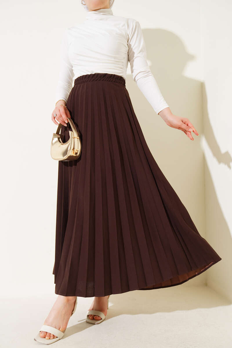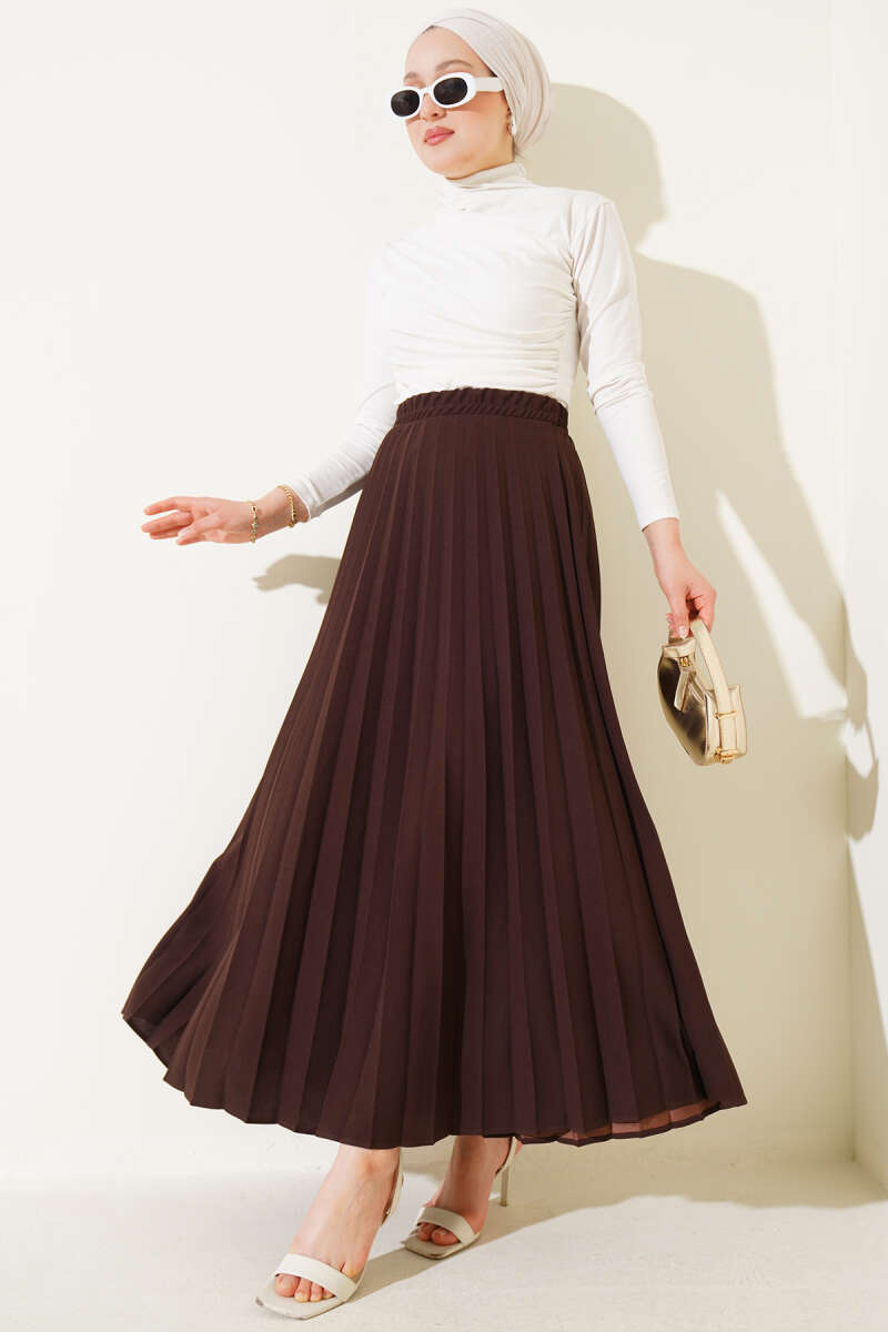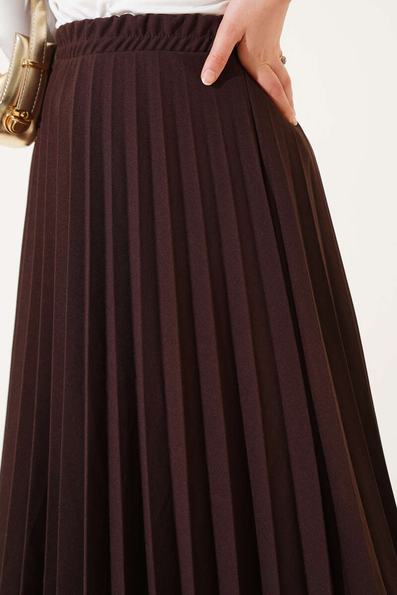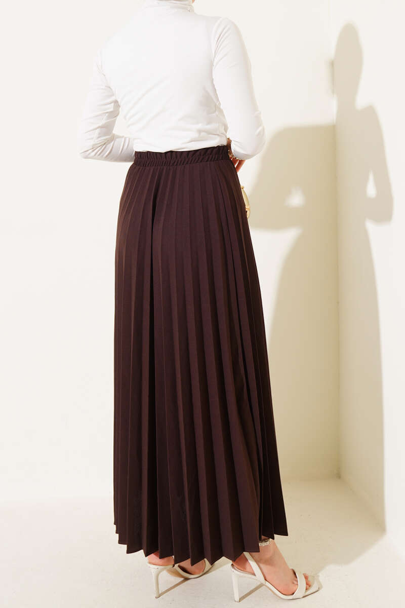 Düğme Detaylı Kuşaklı Ekoseli Etek Kestane