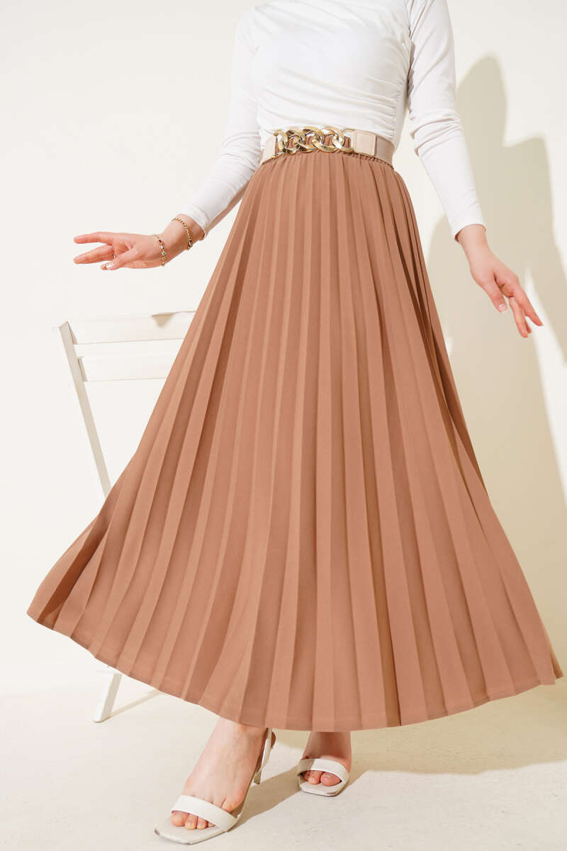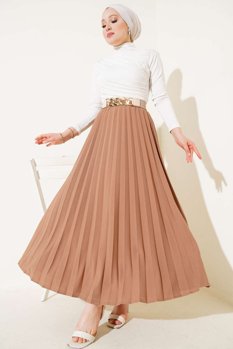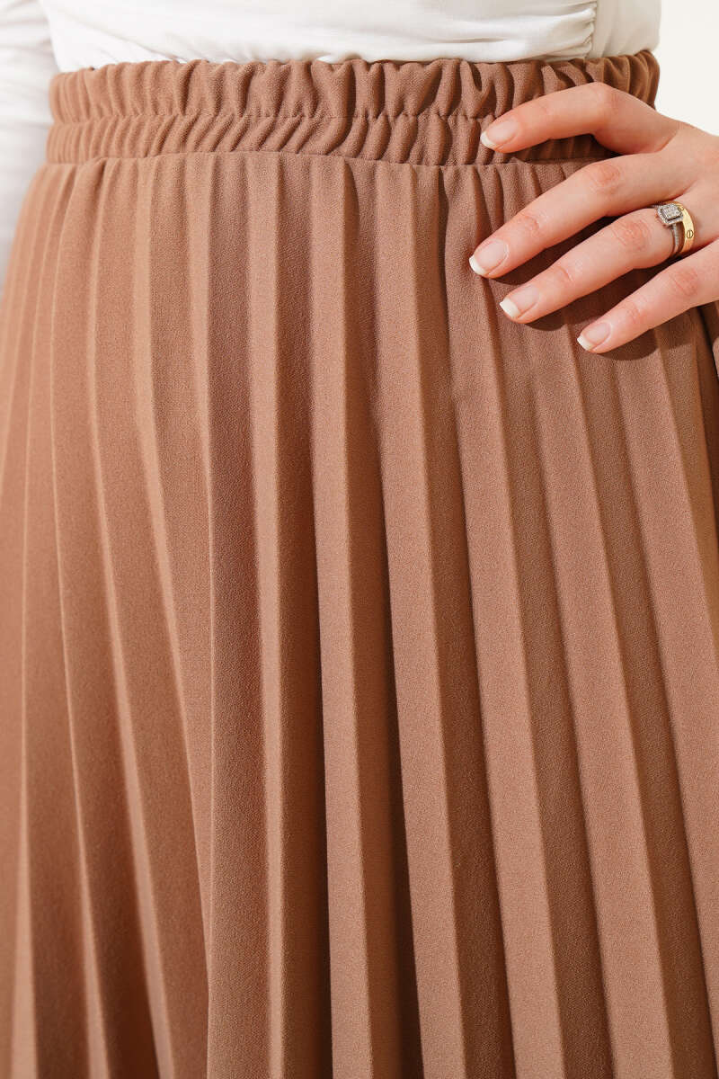 Beli Lastikli Kloş Basic Etek Bej