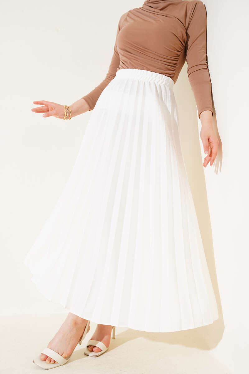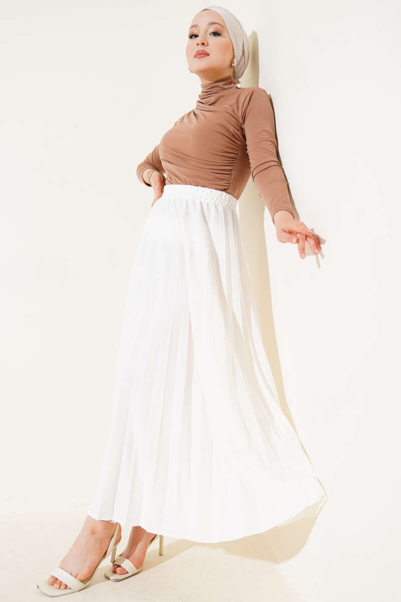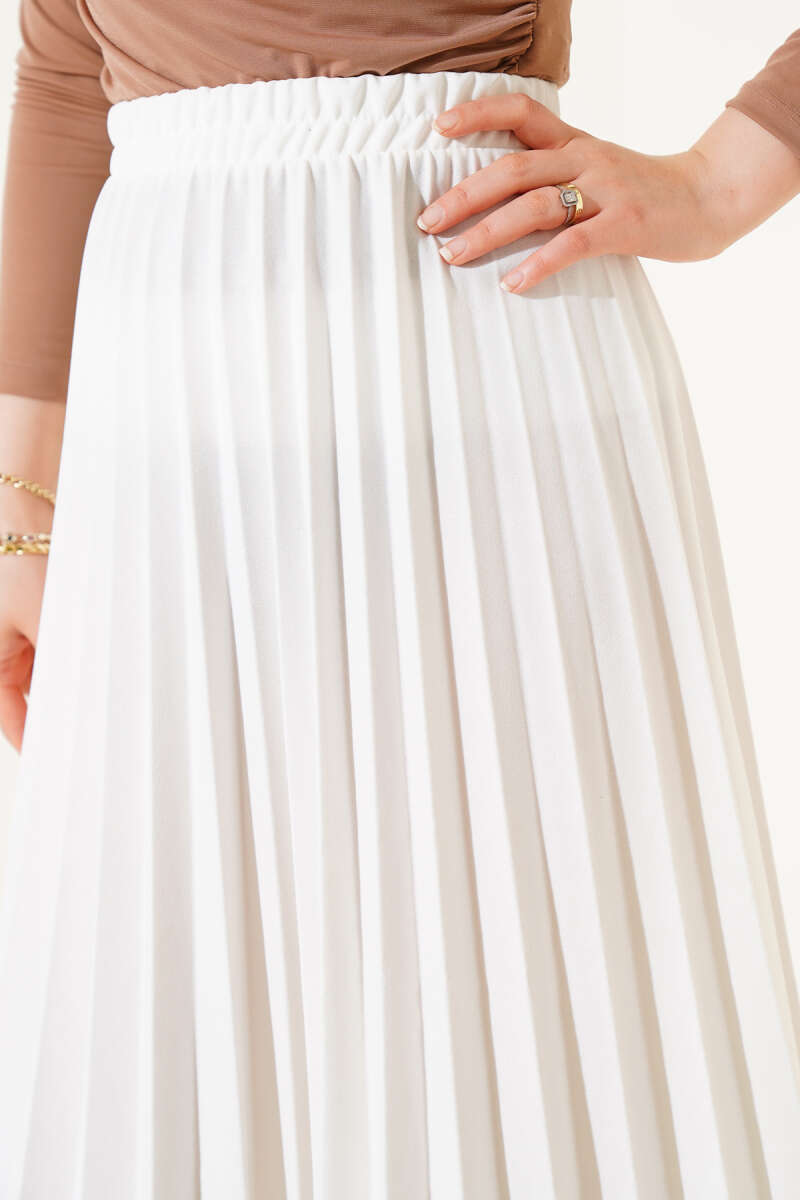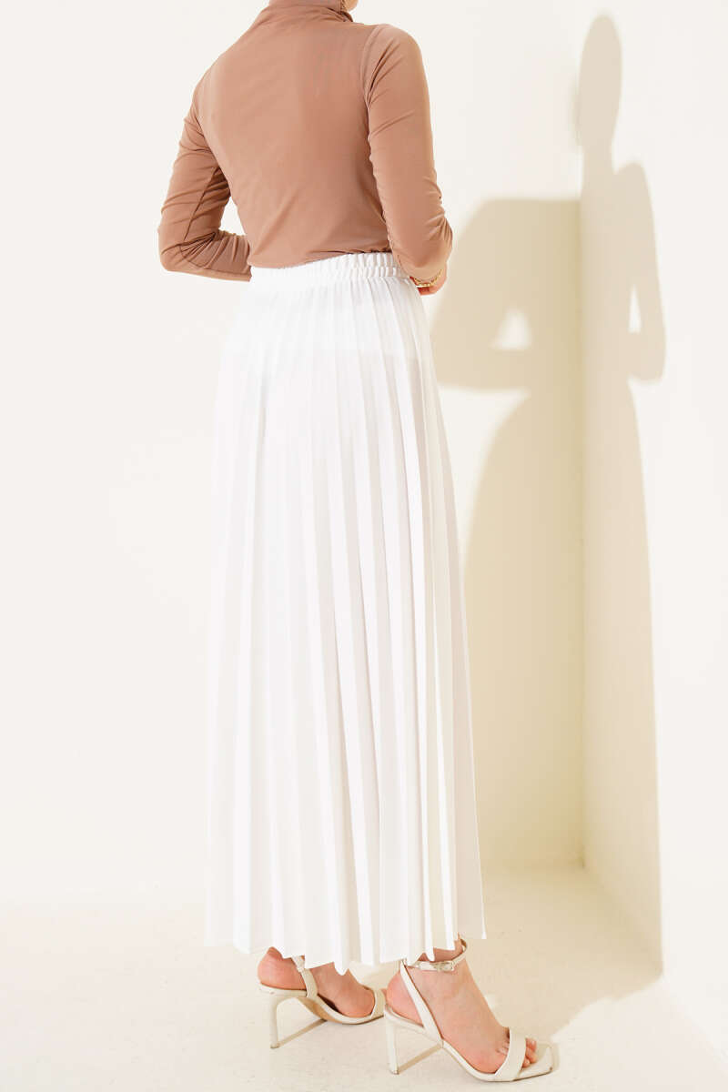 Beli Lastik Detaylı Kloş Scuba Etek Beyaz