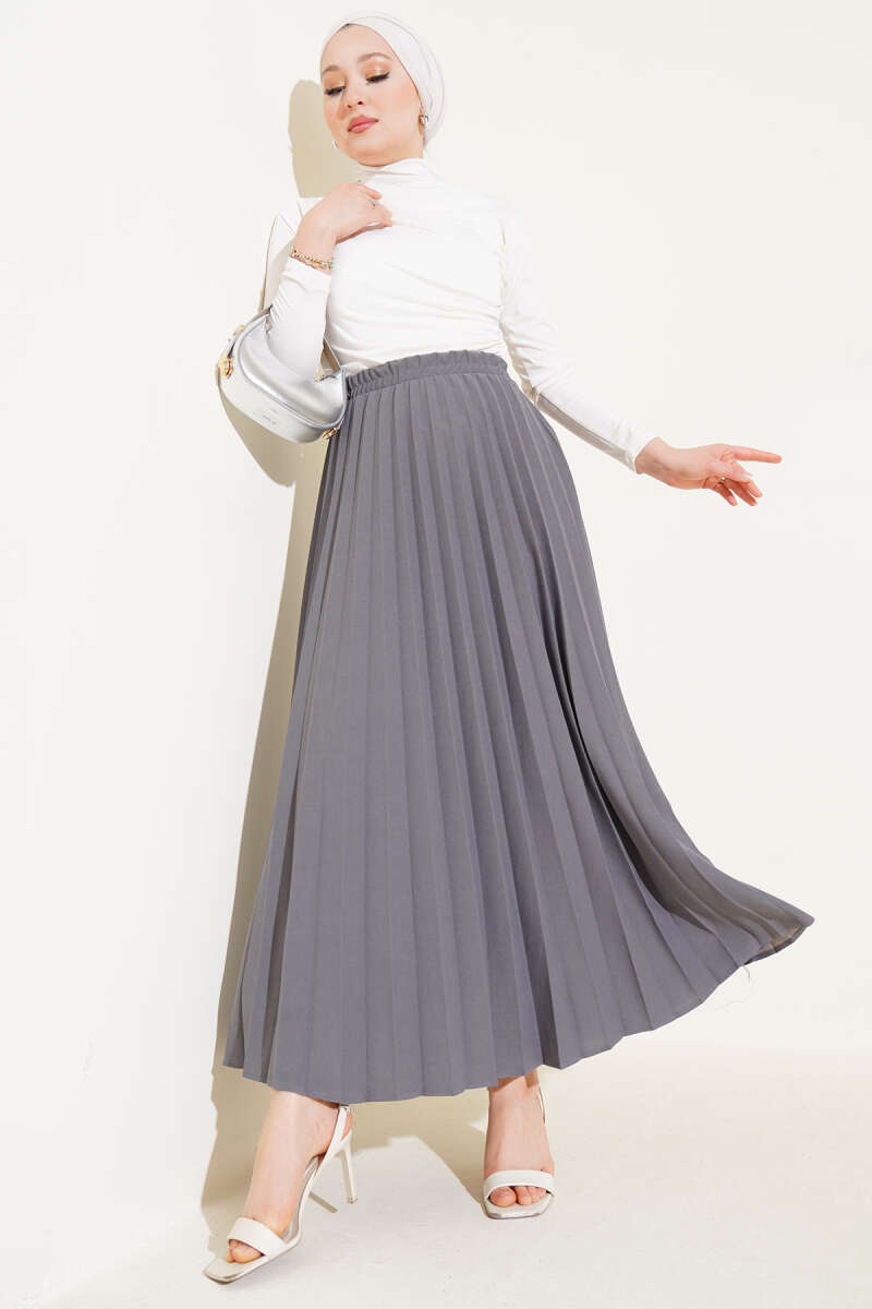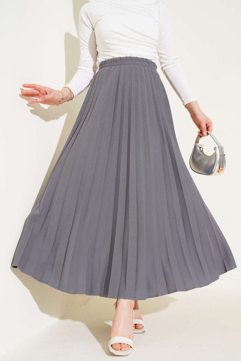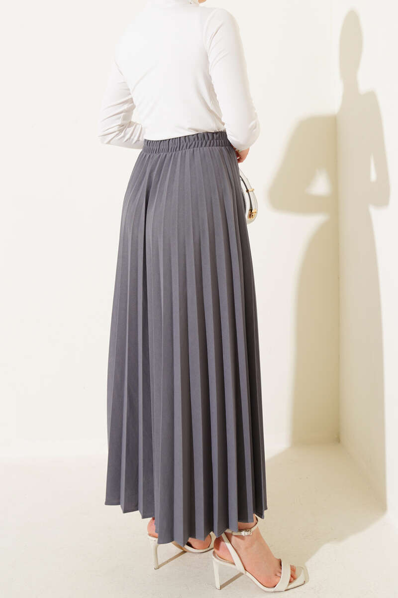 Beli Lastikli Kloş Basic Etek Gri