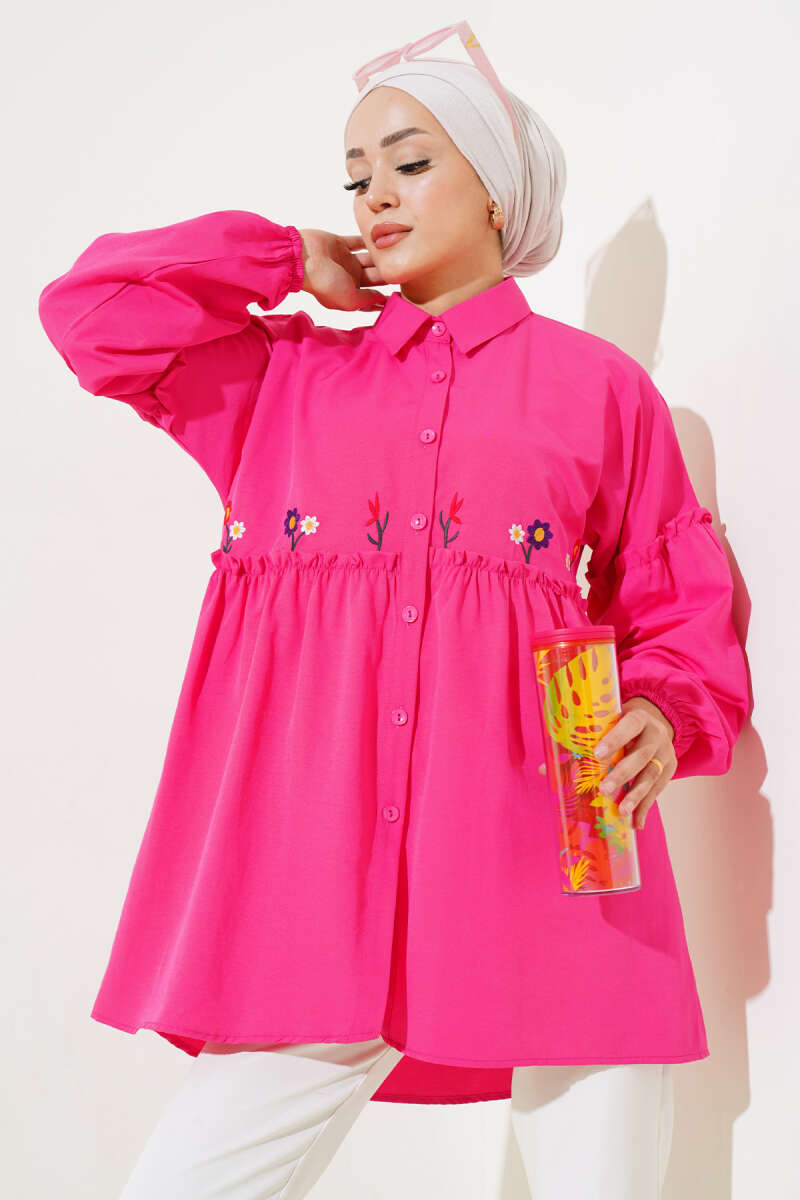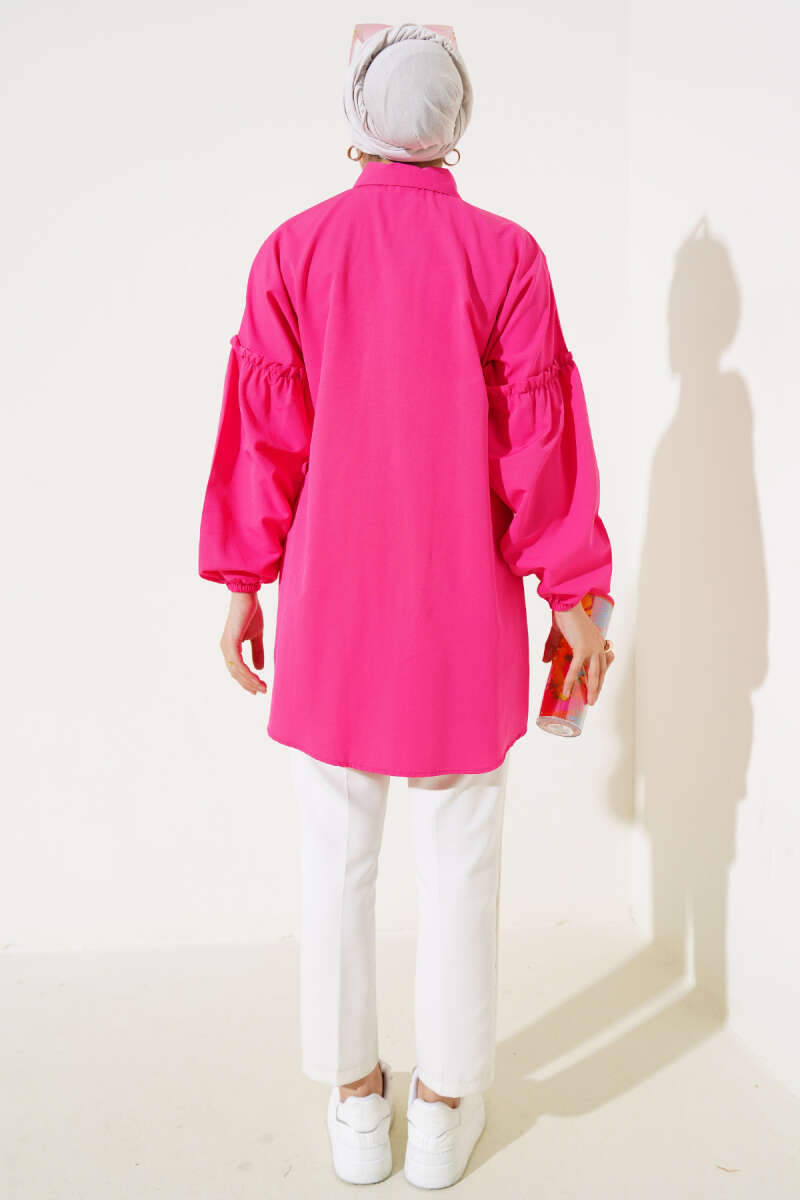 Gizli Düğmeli Bel Kuşaklı Gömlek Pembe