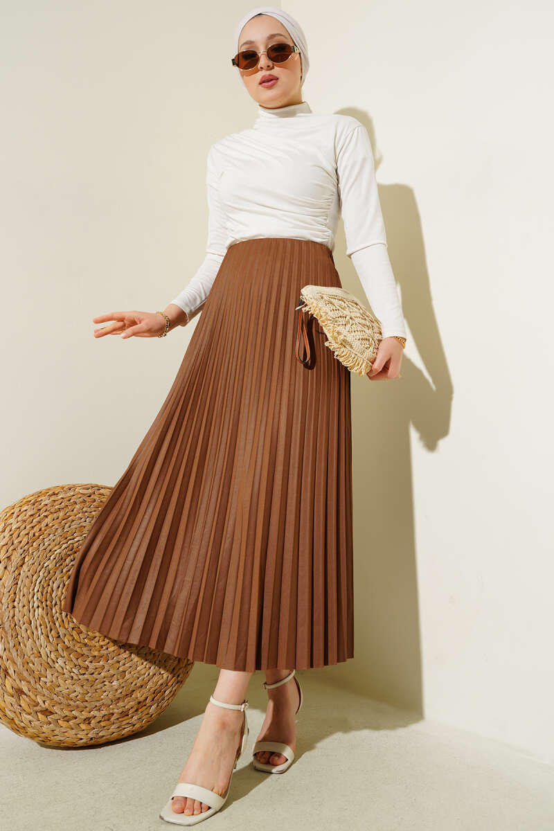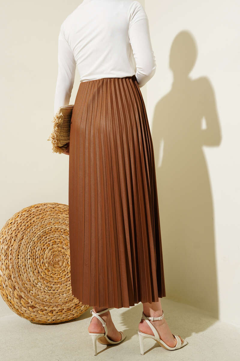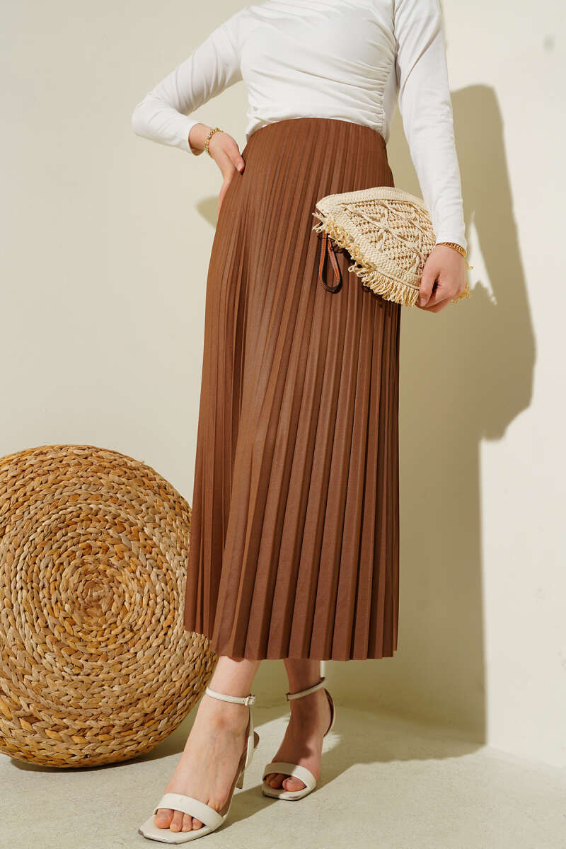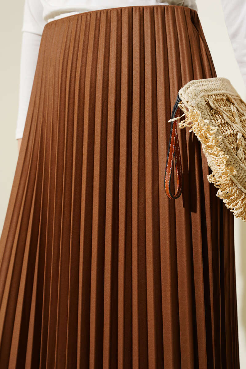 Yan Kemer Detaylı Ekoseli Etek Kahve