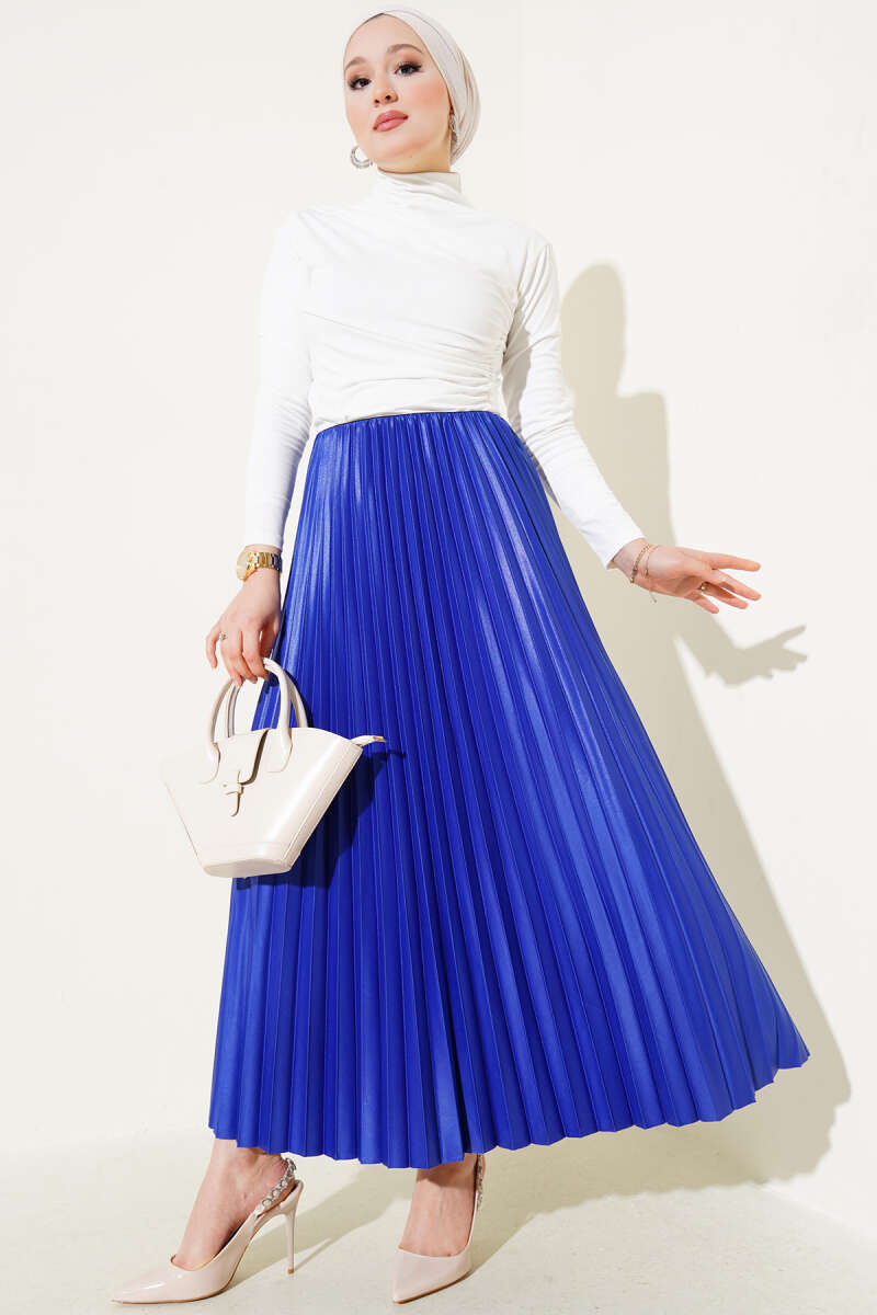 Kemer Aksesuarlı Ekoseli Etek Bordo