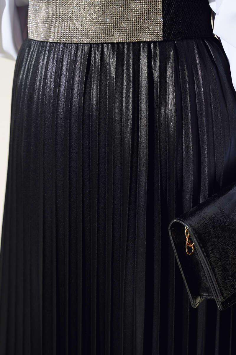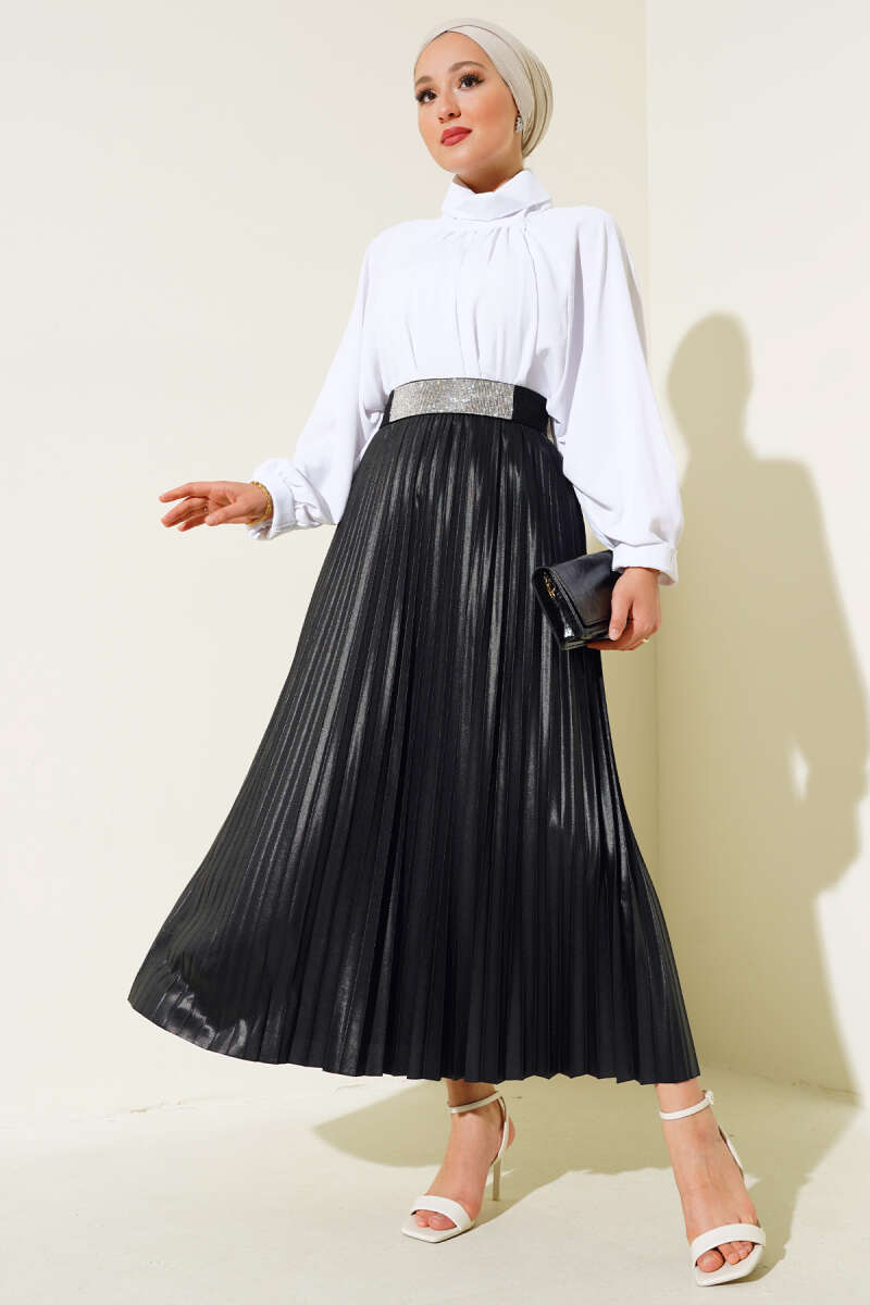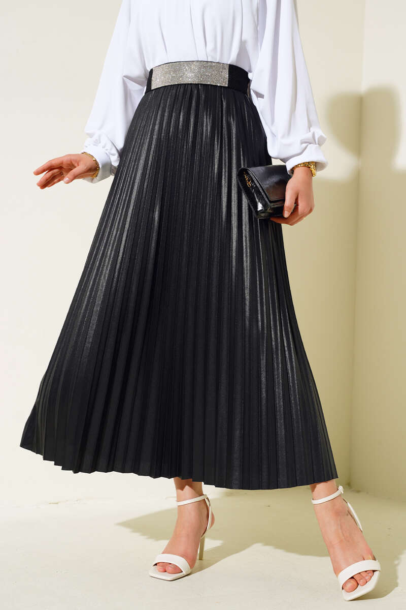 Kemer Aksesuarlı Ekoseli Etek Bordo