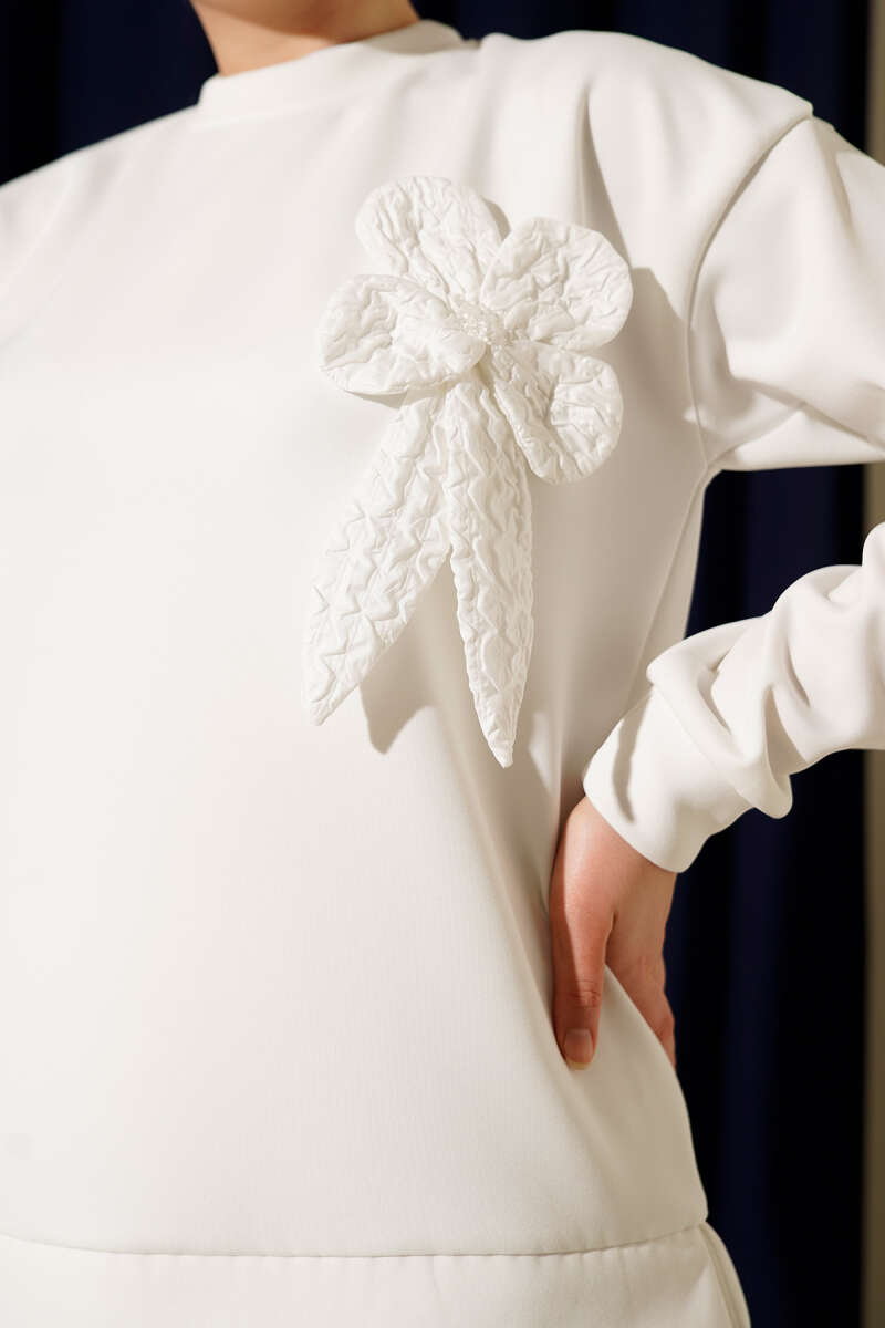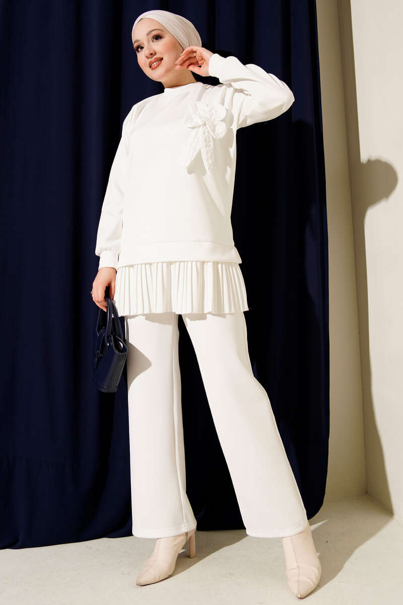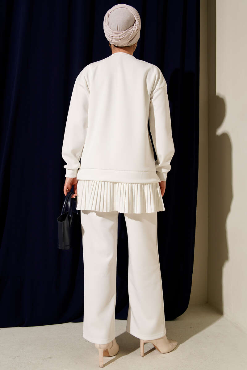 Asimetrik Kesim Bisiklet Yaka İkili Takım Ekru