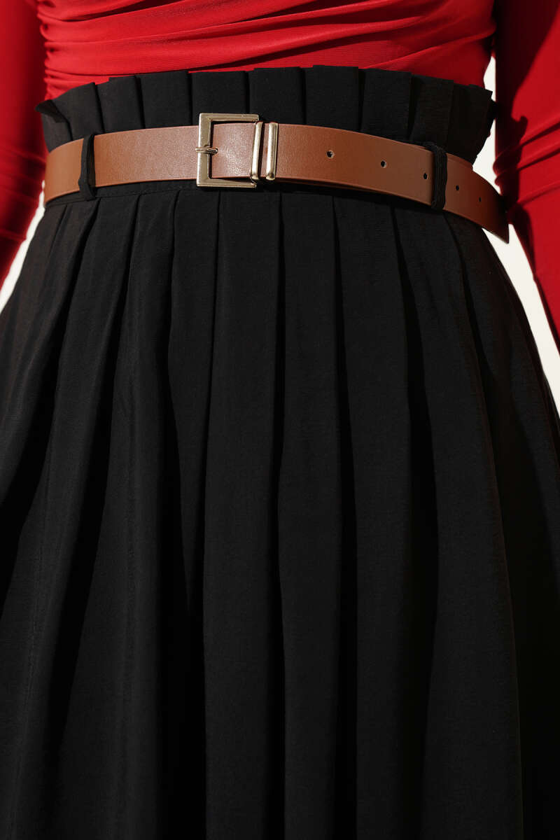 Zarafeti konforla buluşturan bu Pileli Kemerlİ Tensel Etek, her adımda size eşlik eden uçuş uçuş formuyla gardırobunuzun en asil parçası olacak. Modern kesimi ve zamansız rengiyle hem özel davetlerde hem de şık günlük kombinlerde vazgeçilmeziniz olmaya aday.