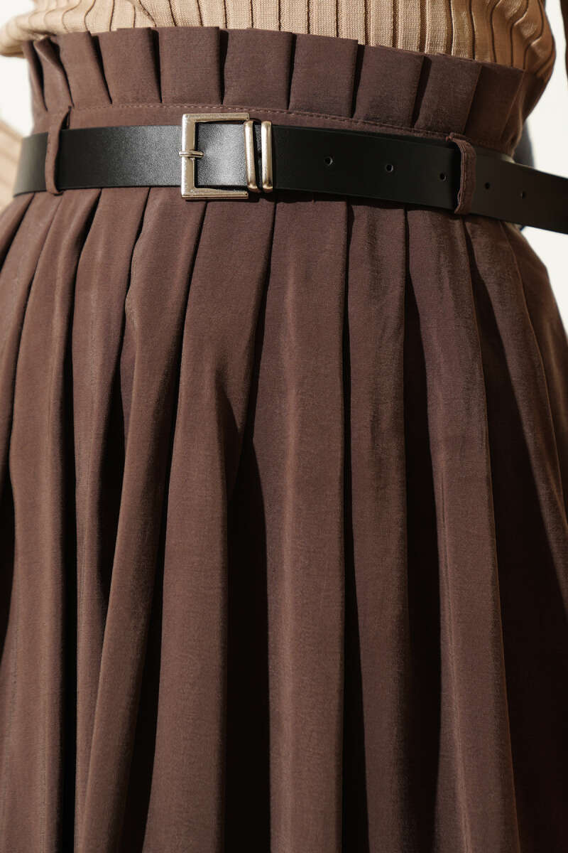Metal Düğmeli Şal Kemerli Kot Etek Füme