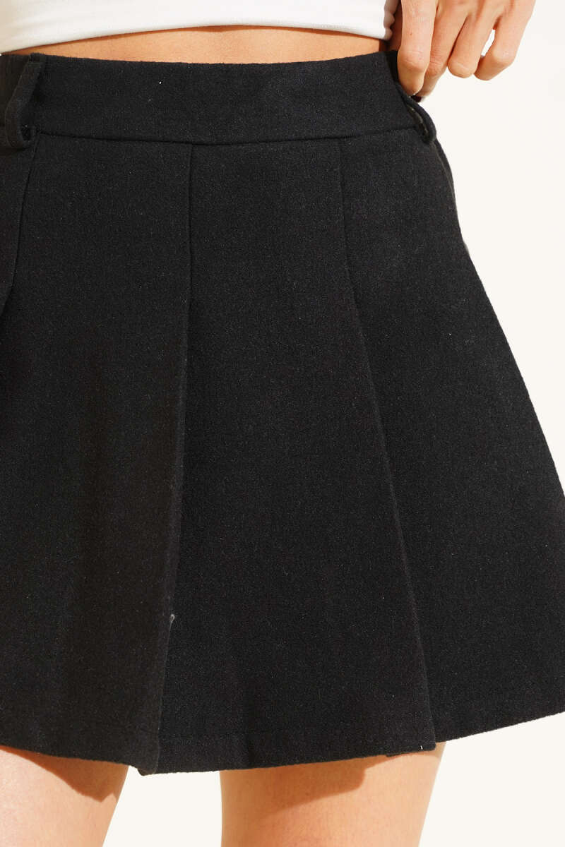 Pileli Şort Astarlı Kaşe Mini Etek Füme
