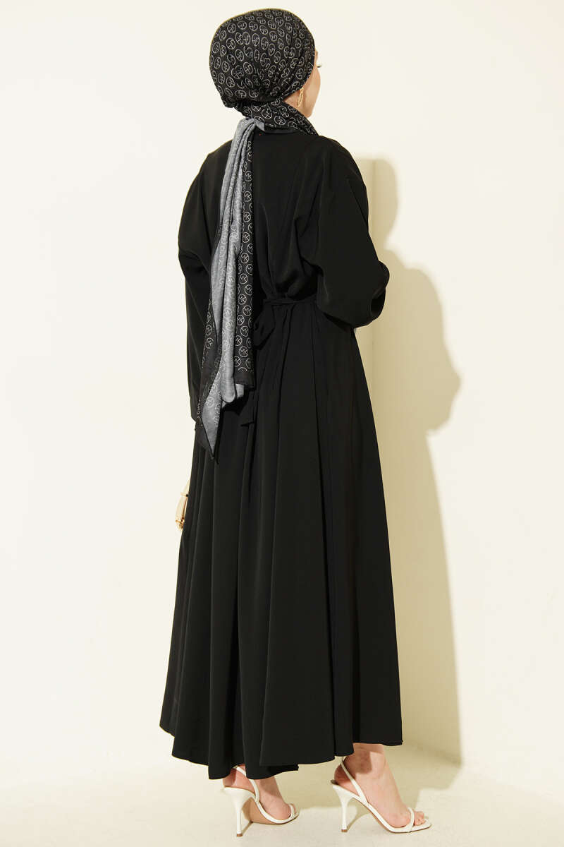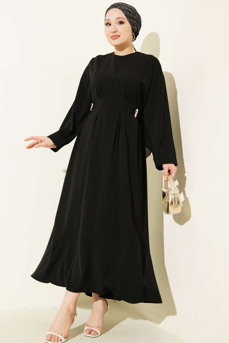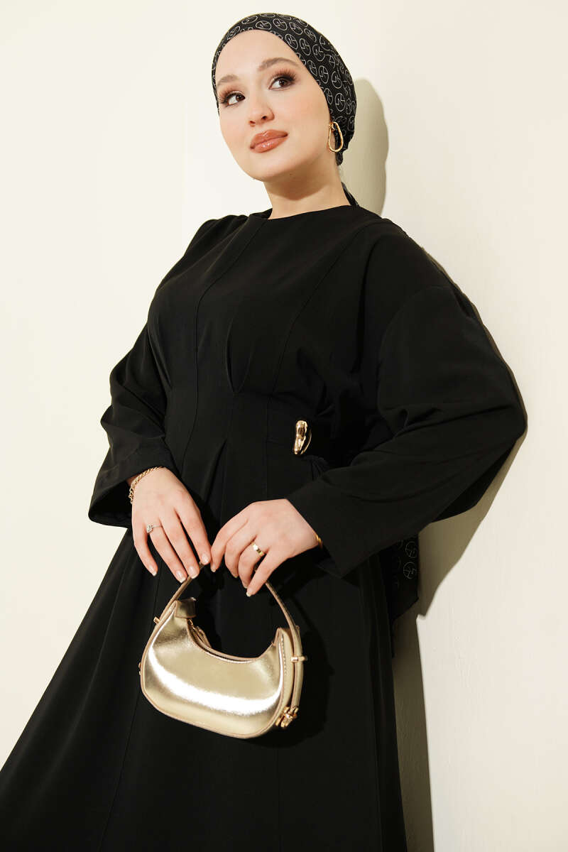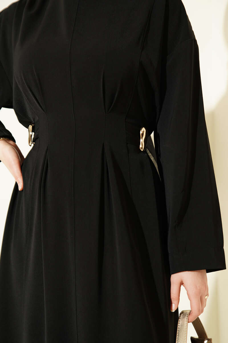 Hakim Yaka Pensli Kemerli Elbise Siyah