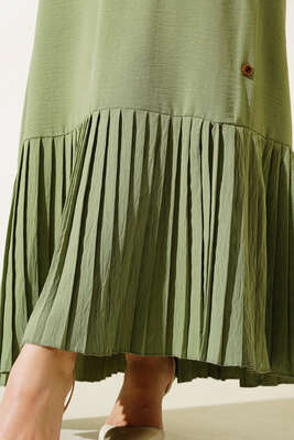 Yeni sezon elbisemiz şık tarzıyla sizlerle beraber. Elbisemizin etek uçları pileli olup, eteğinin yan kısmı düğme detaylıdır. Elbisemizin kendi kumaşından kuşağı bulunmaktadır. Renk seçenekleriyse dolabınızda yerini beklemektedir.