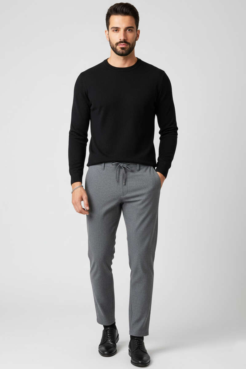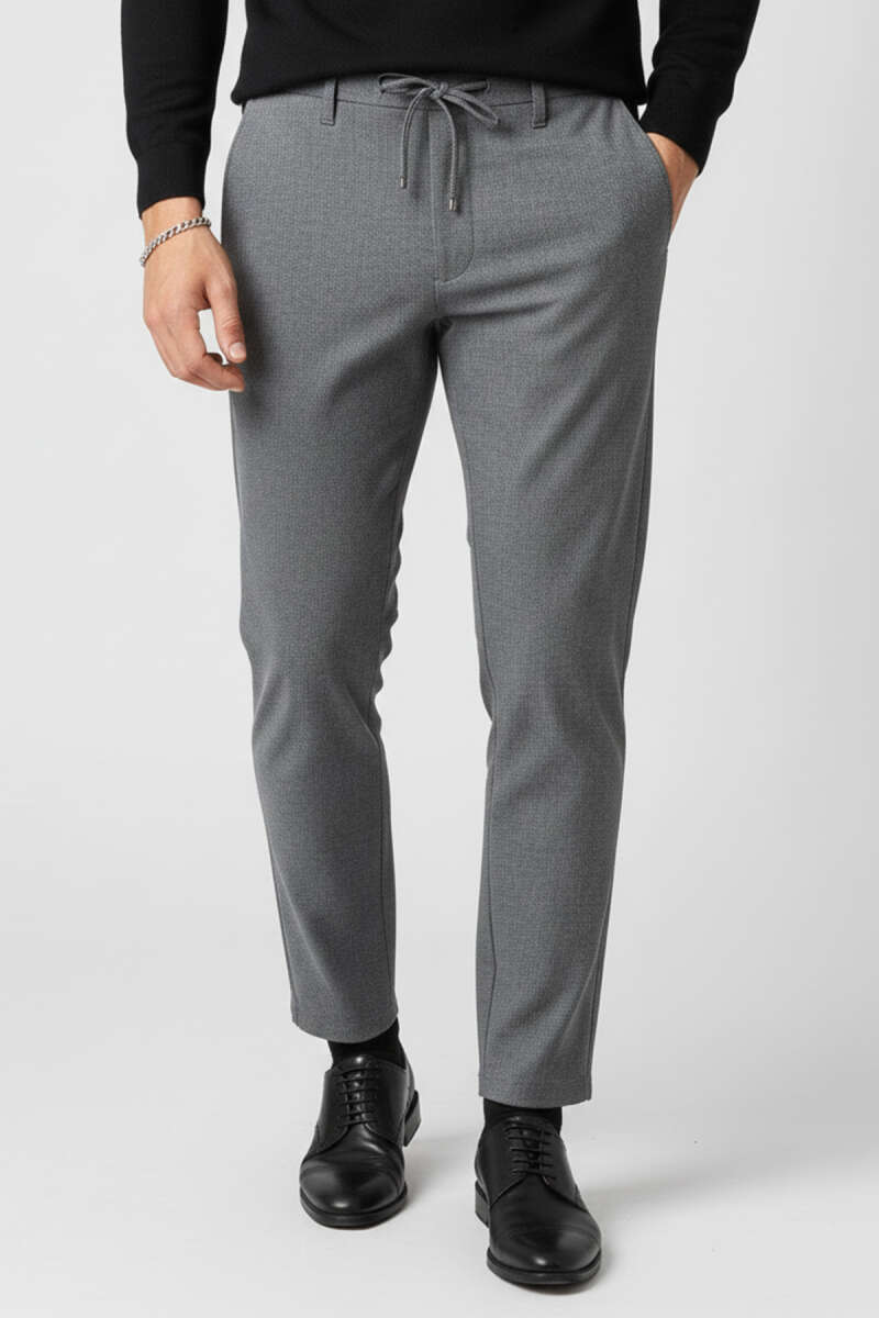 Pilesiz Bel Bağcıklı Erkek Pantolon Gri