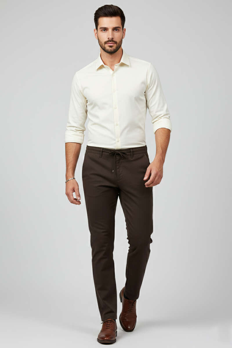Pilesiz Bel Bağcıklı Erkek Pantolon Kahve