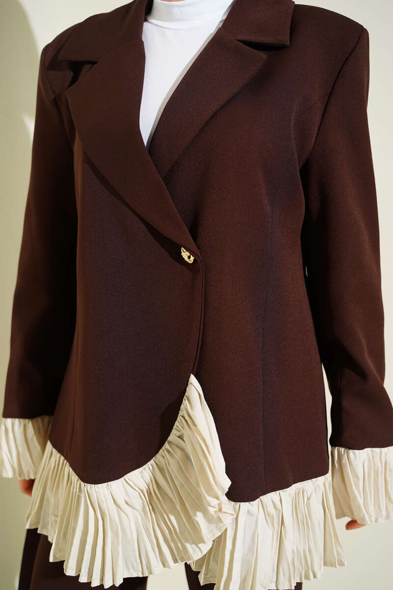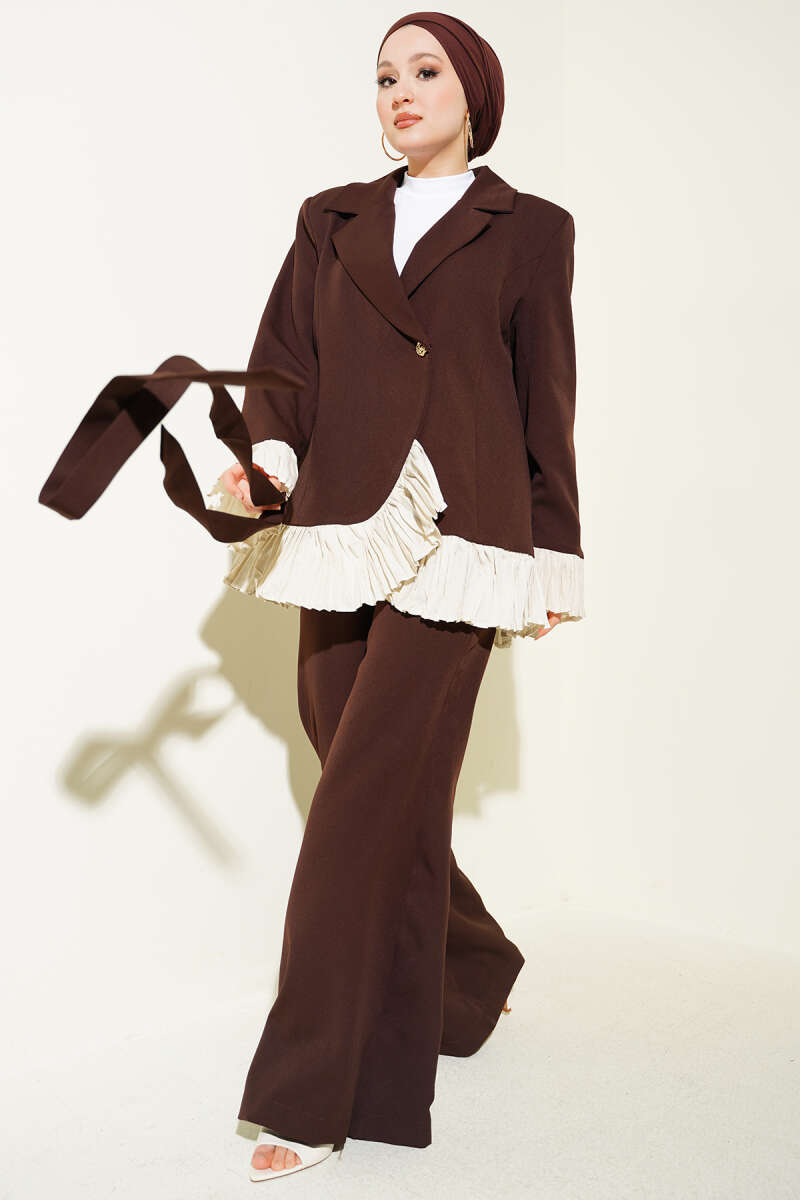 Pilise Detaylı Kruvaze İkili Takım Kahve