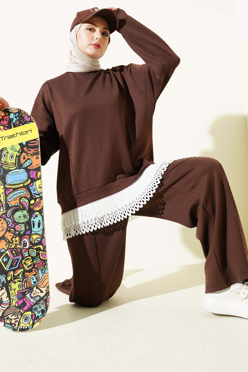 İp Kuşaklı Etekli Tensel İkili Takım Vizon