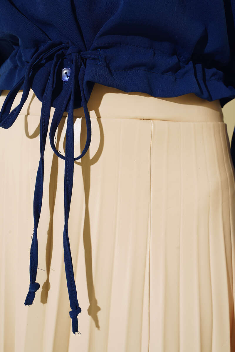Yeni sezon eteğimiz deri görünümlüdür. Şık bir kombin için tamamlayıcı bir parça arıyorsan piliseli eteğimiz doğru tercihin olacaktır. Rahatlığın ve şıklığın imzasını taşıyan eteğimiz dolabınızın vazgeçilmez parçası olacaktır.