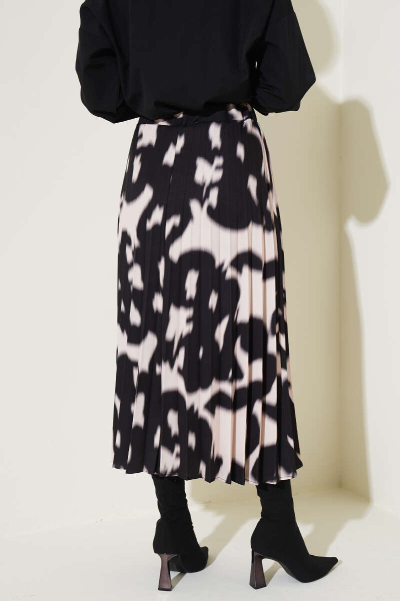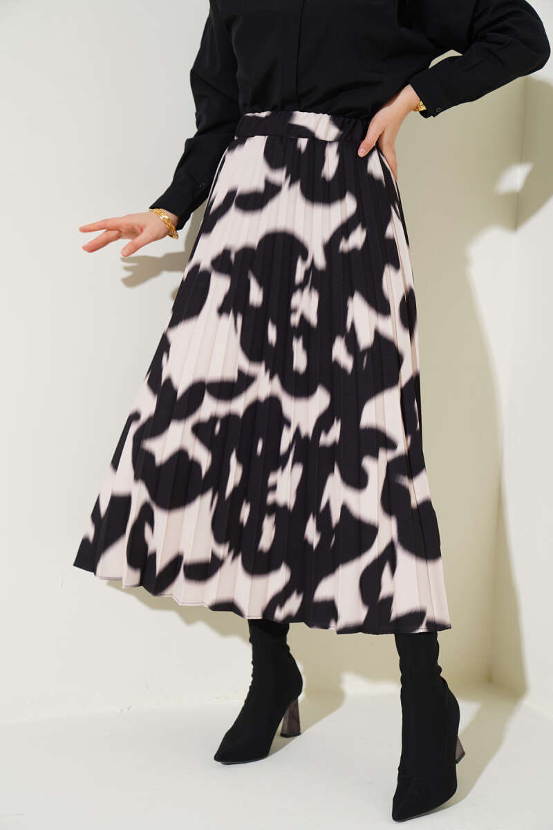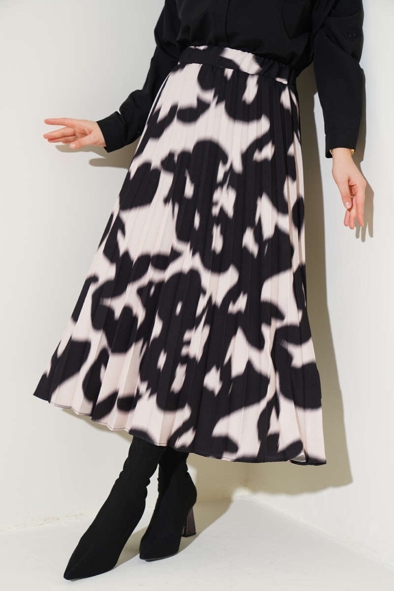 Kemer Aksesuarlı Ekoseli Etek Füme