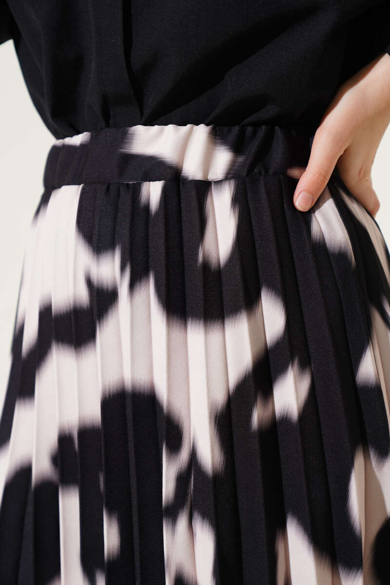 Ekose Desenli Düğmeli Kloş Etek Haki