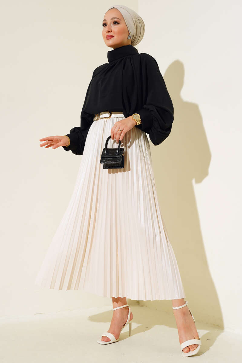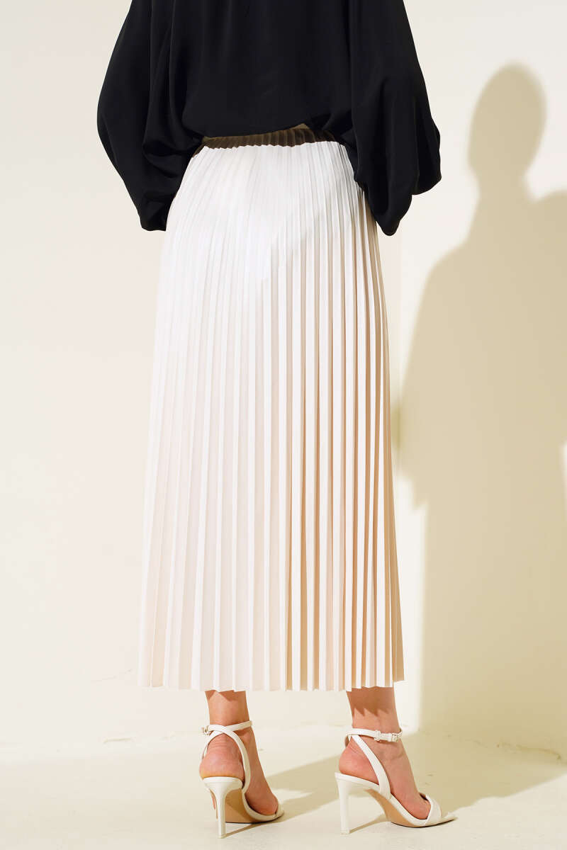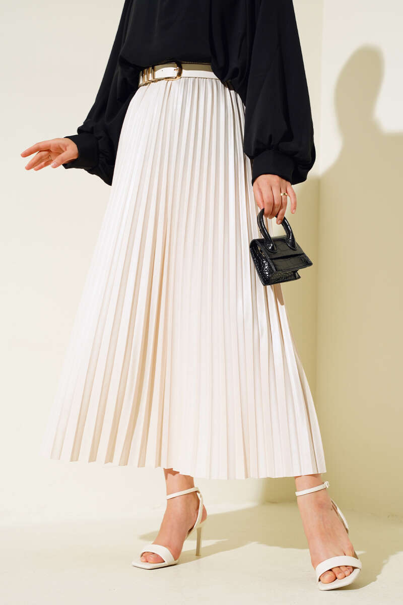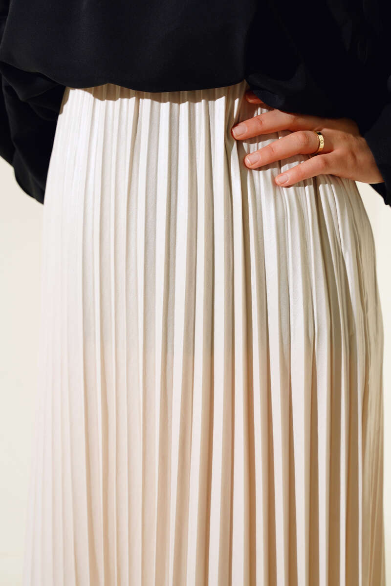 Saten Görünümlü Pileli Etek Bej