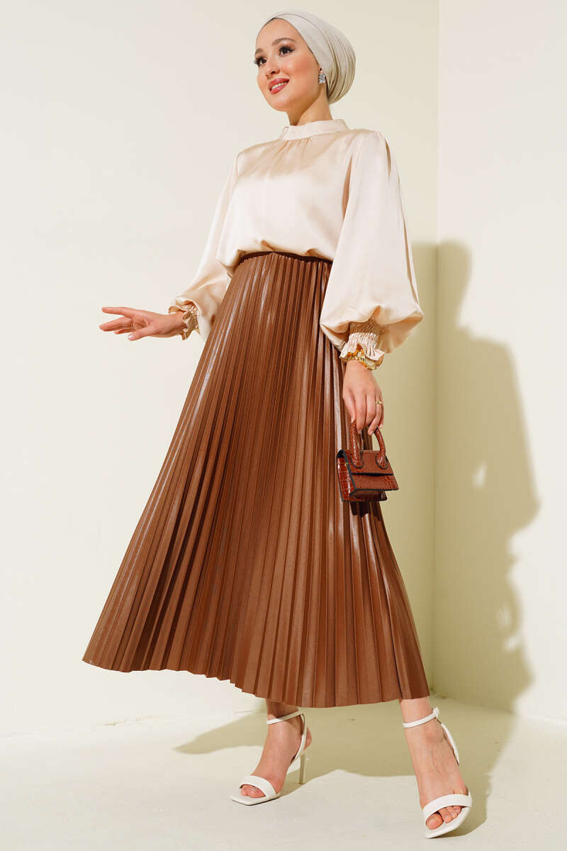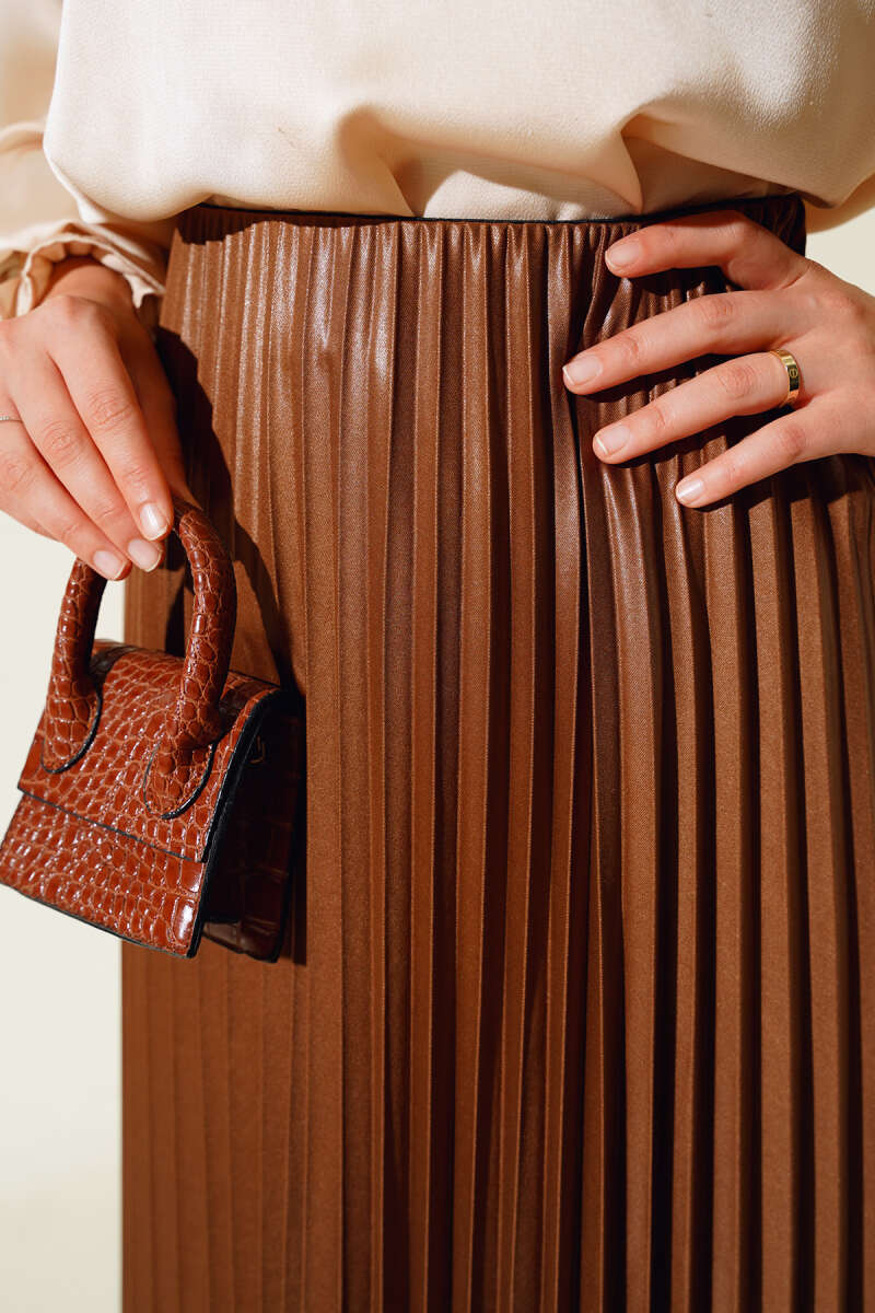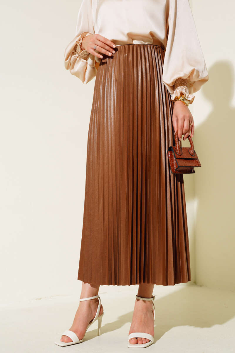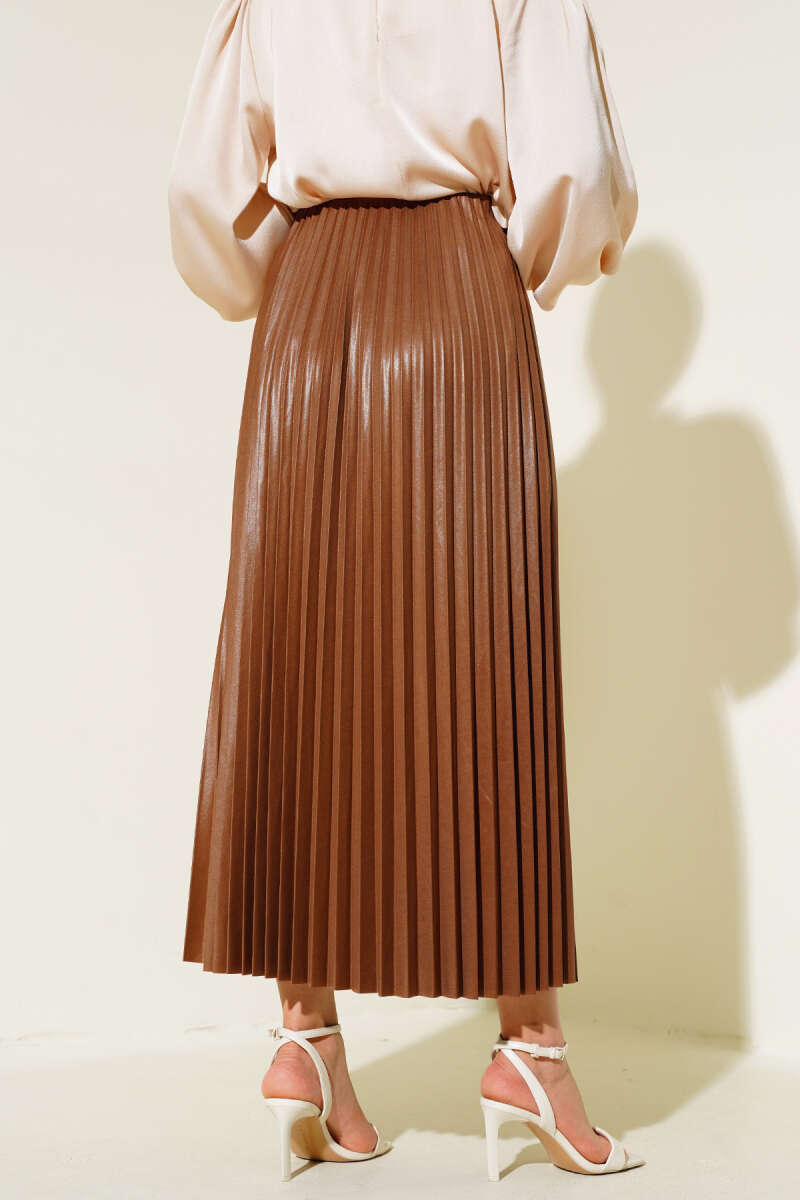 Loyşa Bel Lastikli Kemerli Etek Kahve