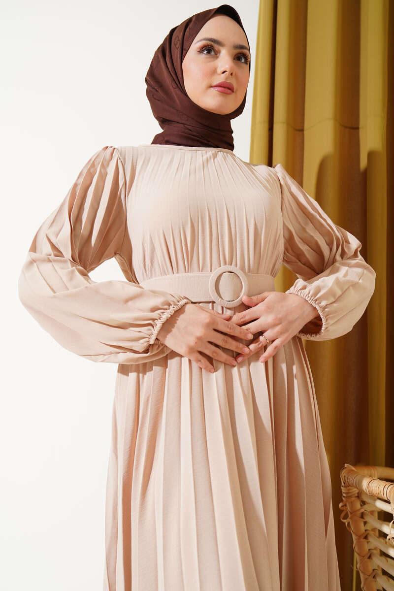 Bilek Bağlamalı Kuşaklı Abiye Elbise Haki