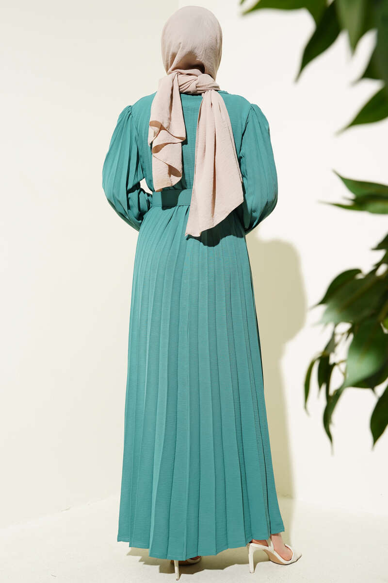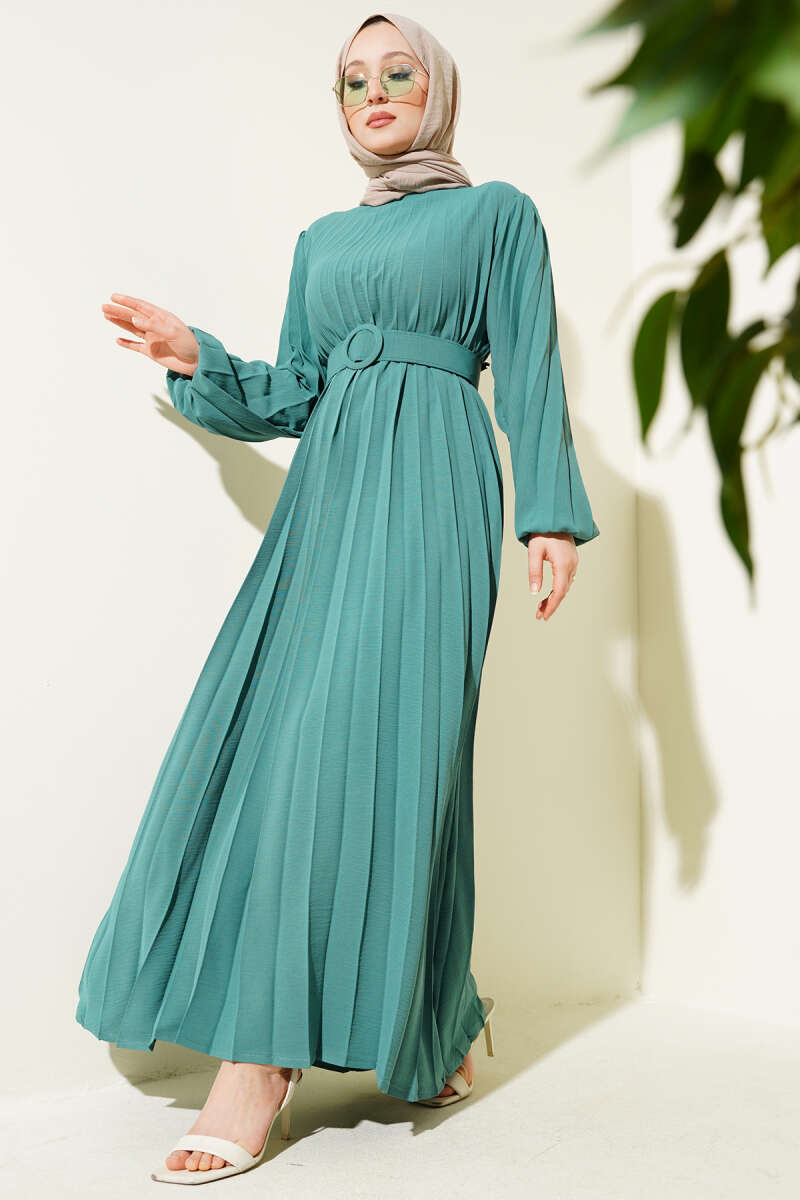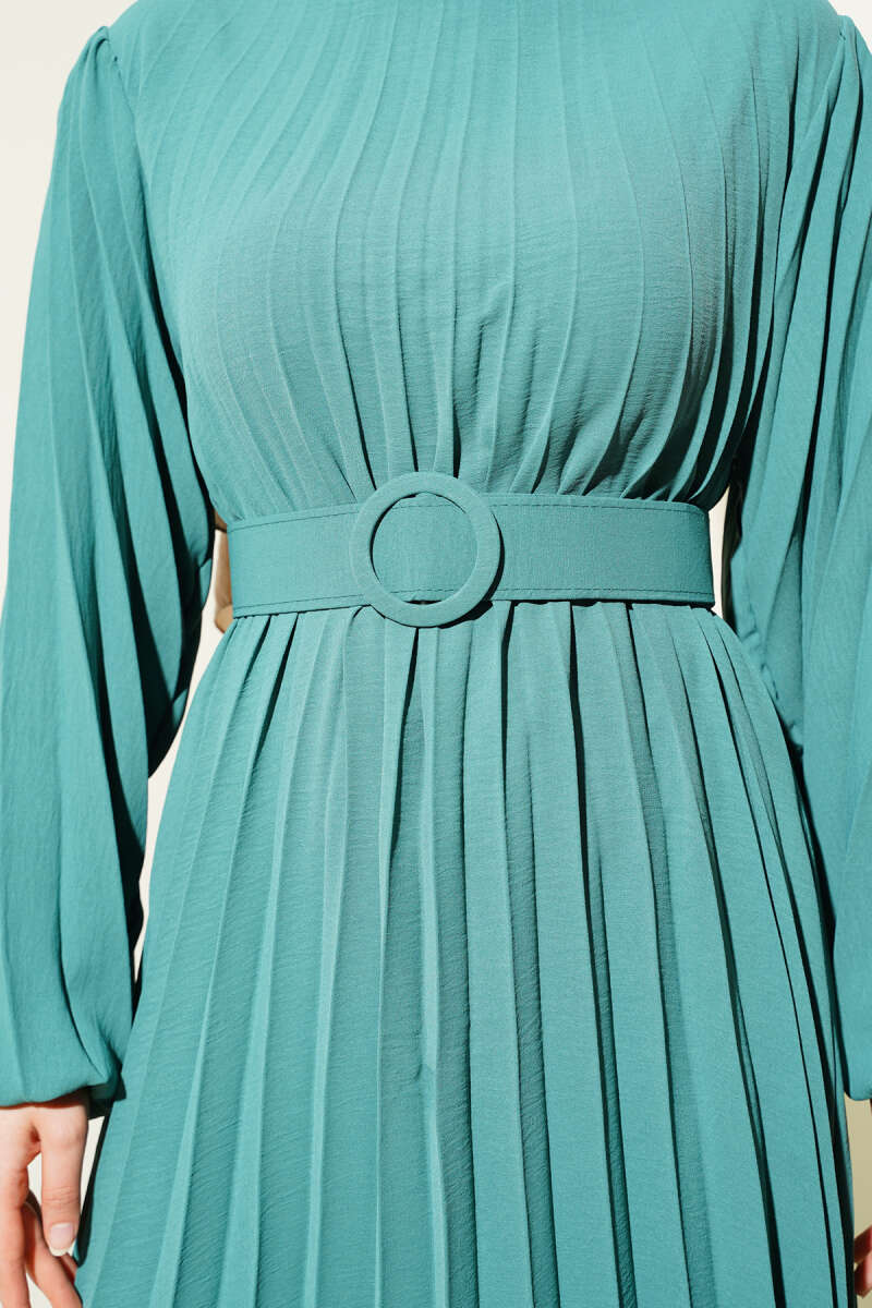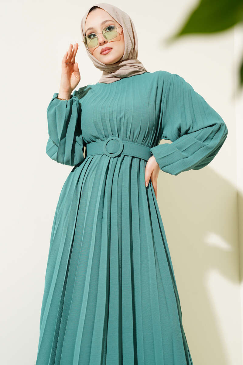 Kat Kat Kuşaklı Terikoton Elbise Haki