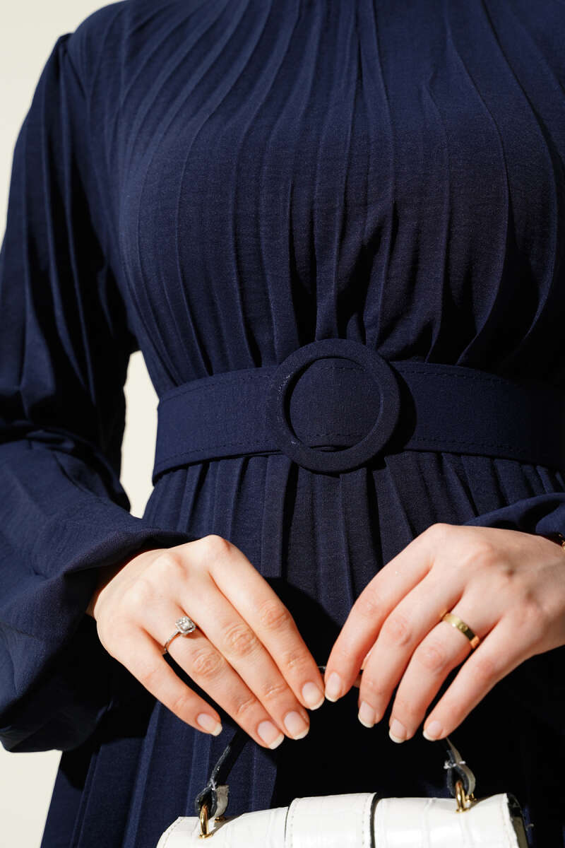 Scuba Pens Detaylı Kemerli Elbise Lacivert