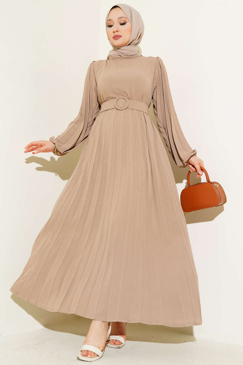 Kat Kat Kuşaklı Terikoton Elbise Kahve