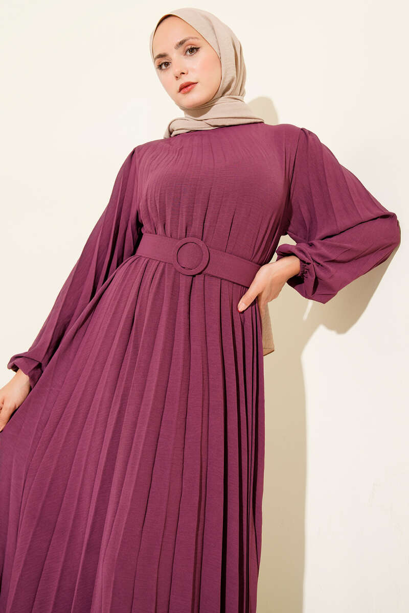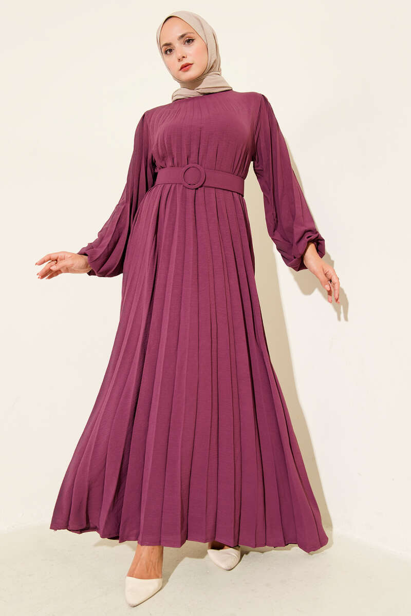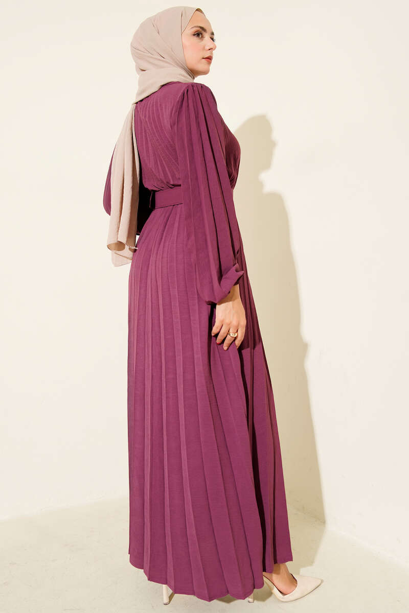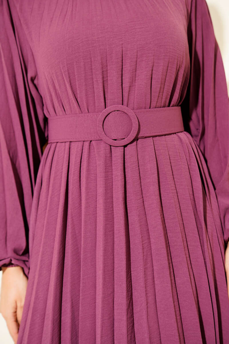 Piliseli Kemerli Ayrobin Elbise Menekşe