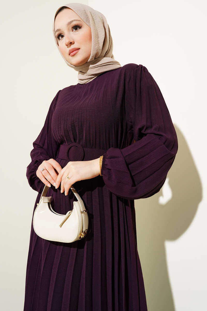 Kat Kat Kuşaklı Terikoton Elbise Bordo